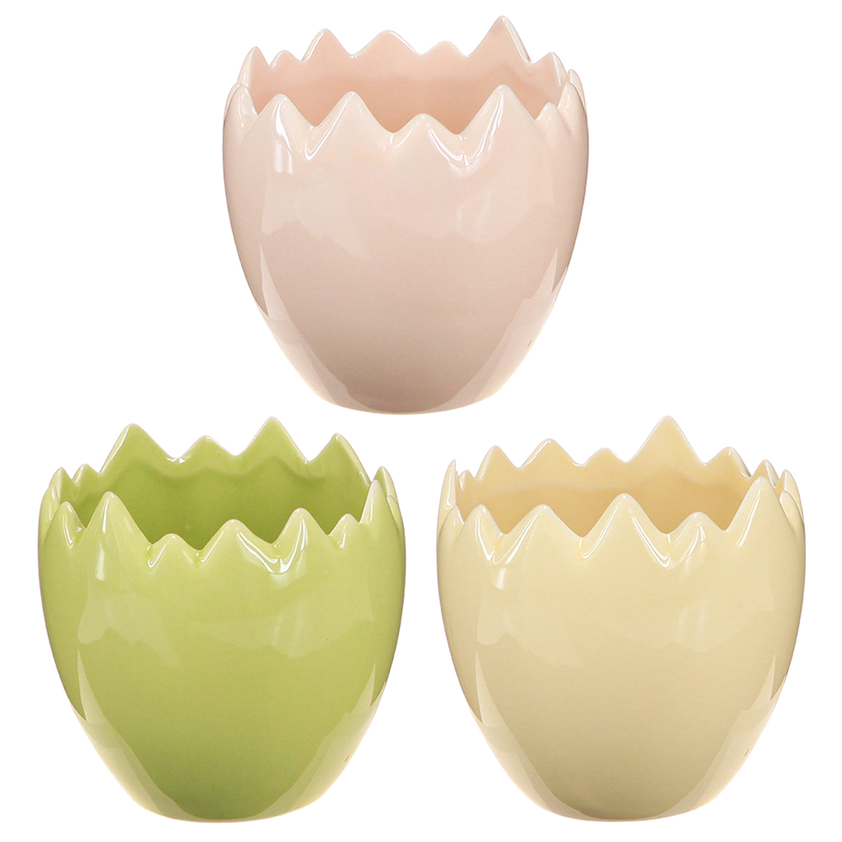 Äggformad blomkruka med bruten kant för kreativ placering på fönsterbrädor och bord, 9 cm, 3 stycken