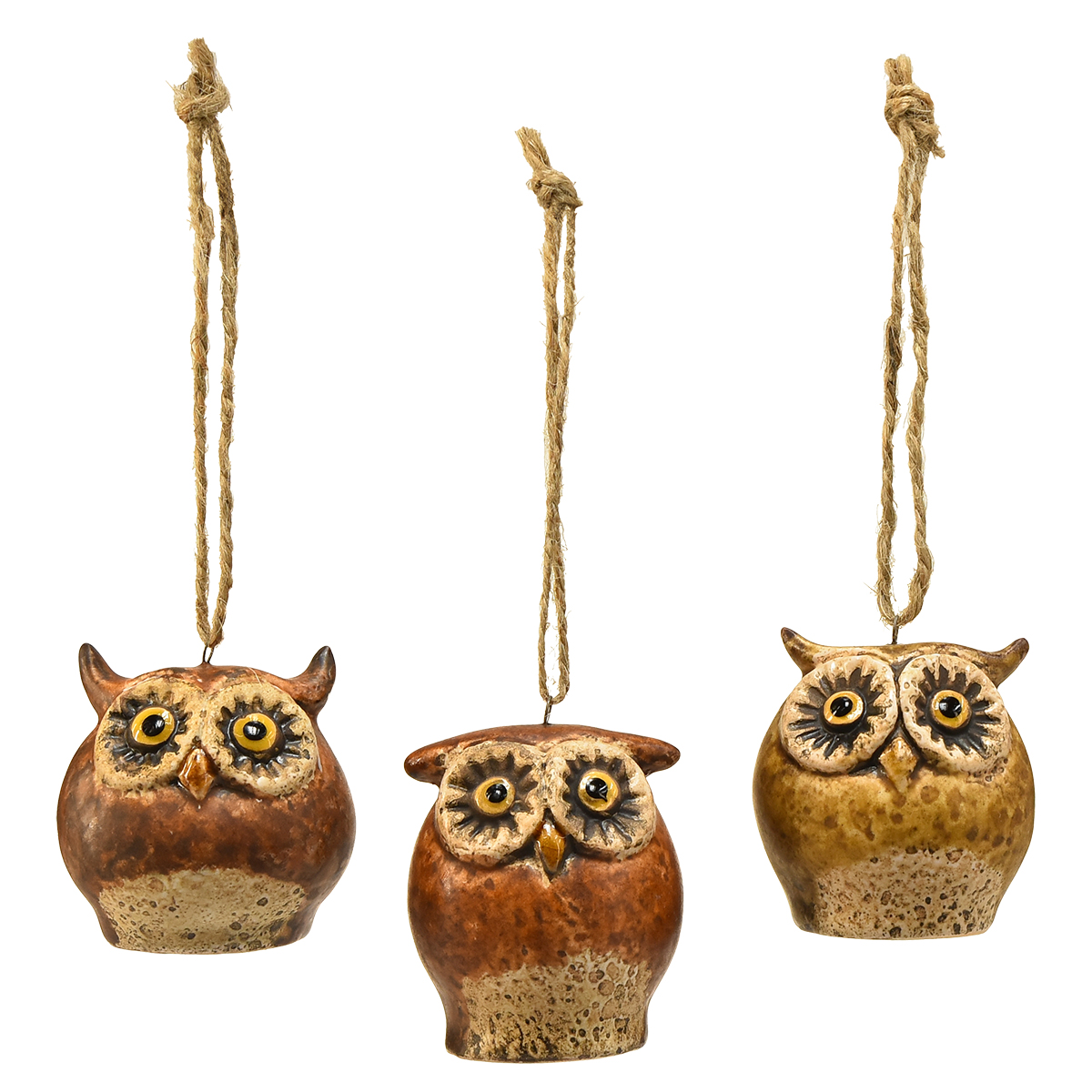 - Tre dekorativa ugglehängen i olika bruna nyanser