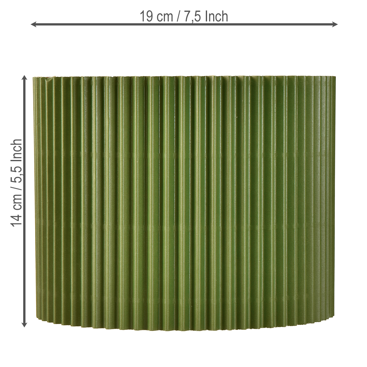 Denna eleganta, mörkgröna papperskruka ger en dekorativ touch till alla rum. Med en diameter på cirka 19 cm och en höjd på cirka 14 cm är krukan idealisk för medelstora växtarrangemang. Den moderna designen med räfflad utsida ger den en intressant textur. Detta gör krukan idealisk för vardagsrum, kontor eller som en kreativ present. Observera att krukan bör täckas med folie innan den används med levande växter för att skydda den mot fukt. Krukan är perfekt för dekorativa växtarrangemang hemma eller för blomsterdekorationer och skyltfönster.