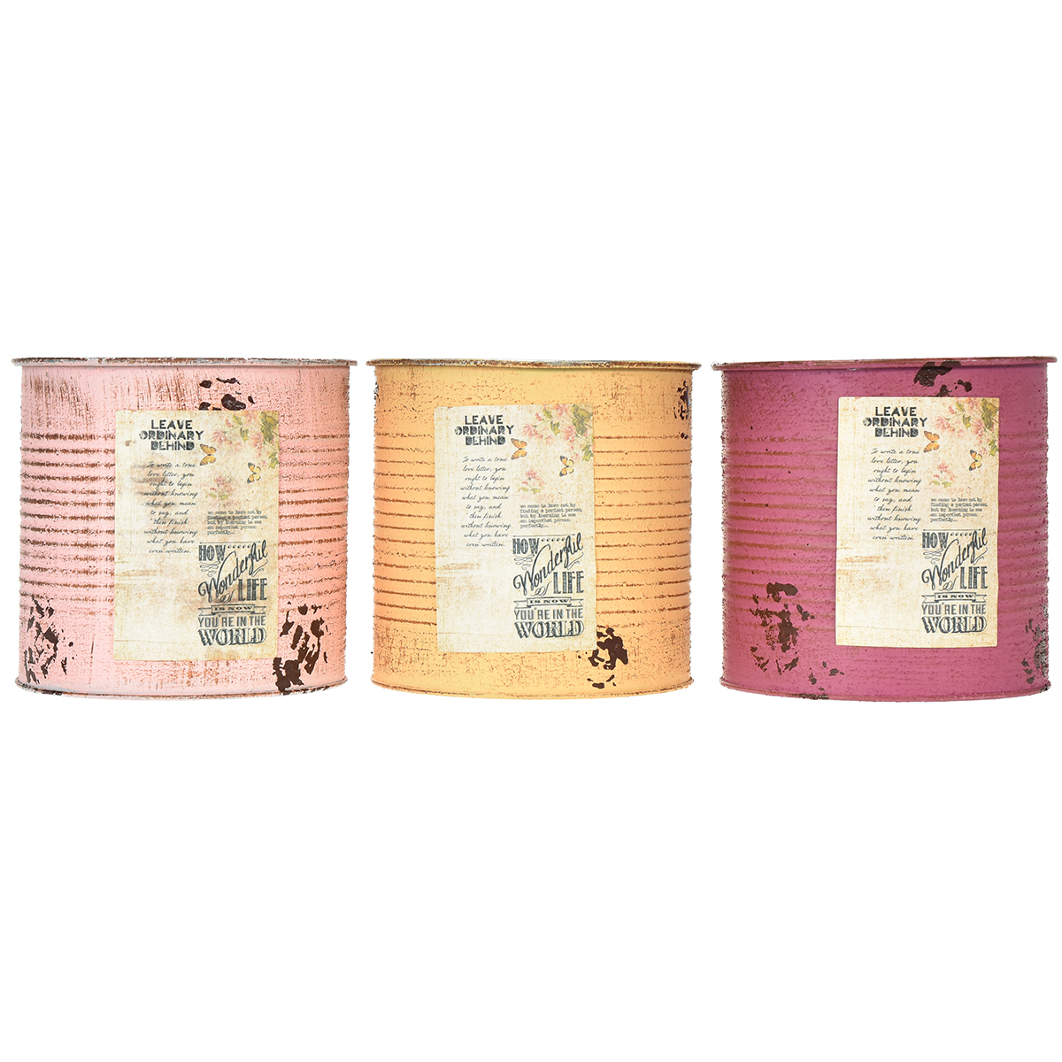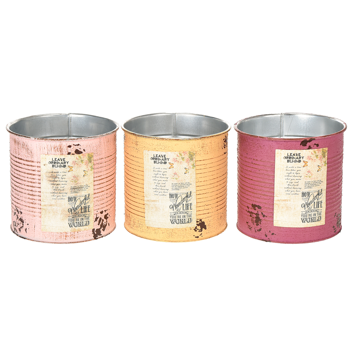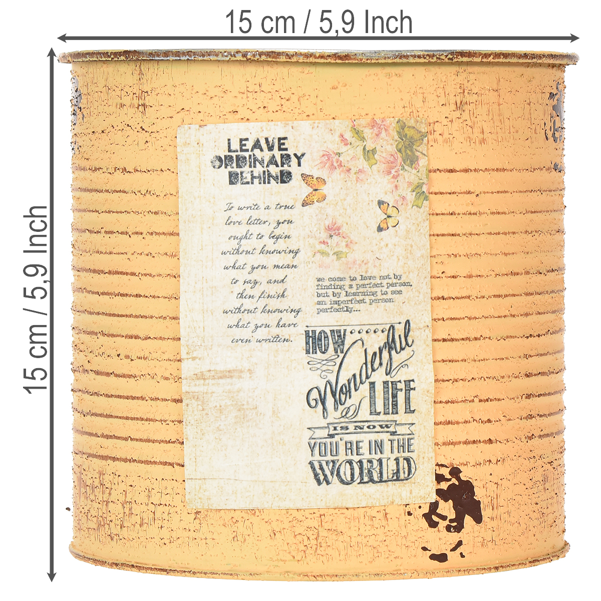 Denna kärleksfullt designade blomkruka i vintagestil kommer att göra alla inredningsprojekt till en speciell höjdpunkt. Tack vare retrodetaljerna och de målade rosteffekterna skapar dessa unika krukor en mysig atmosfär – perfekt för lantlig stil eller en rustik miljö. Kombinationsmöjligheterna är praktiskt taget oändliga – oavsett om den används som en dekorativ kruka för krukväxter, klädd med folie som kruka, som en gör-det-själv-vas för torkade blommor eller som en förvaringsanordning för pennor och små tillbehör. Varje burk är 15 centimeter hög och en sann multitalang.