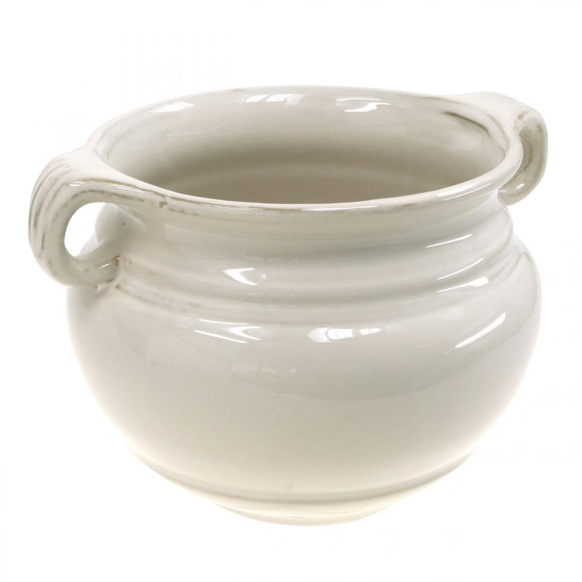 Blomkruka med handtag Planteringskruka Keramisk växtkruka Vit Ø14cm