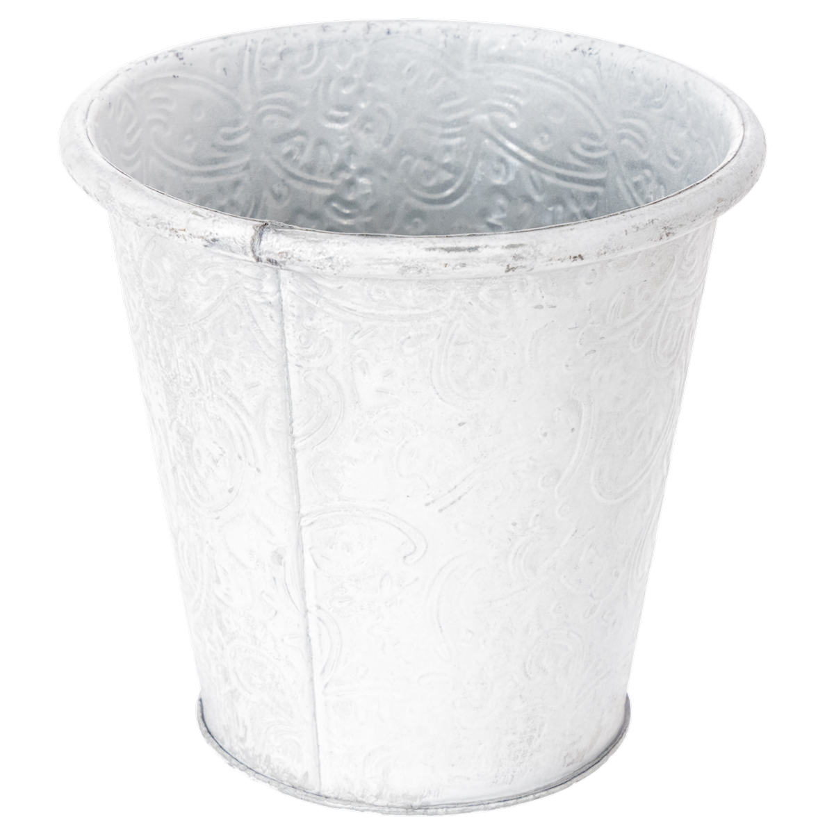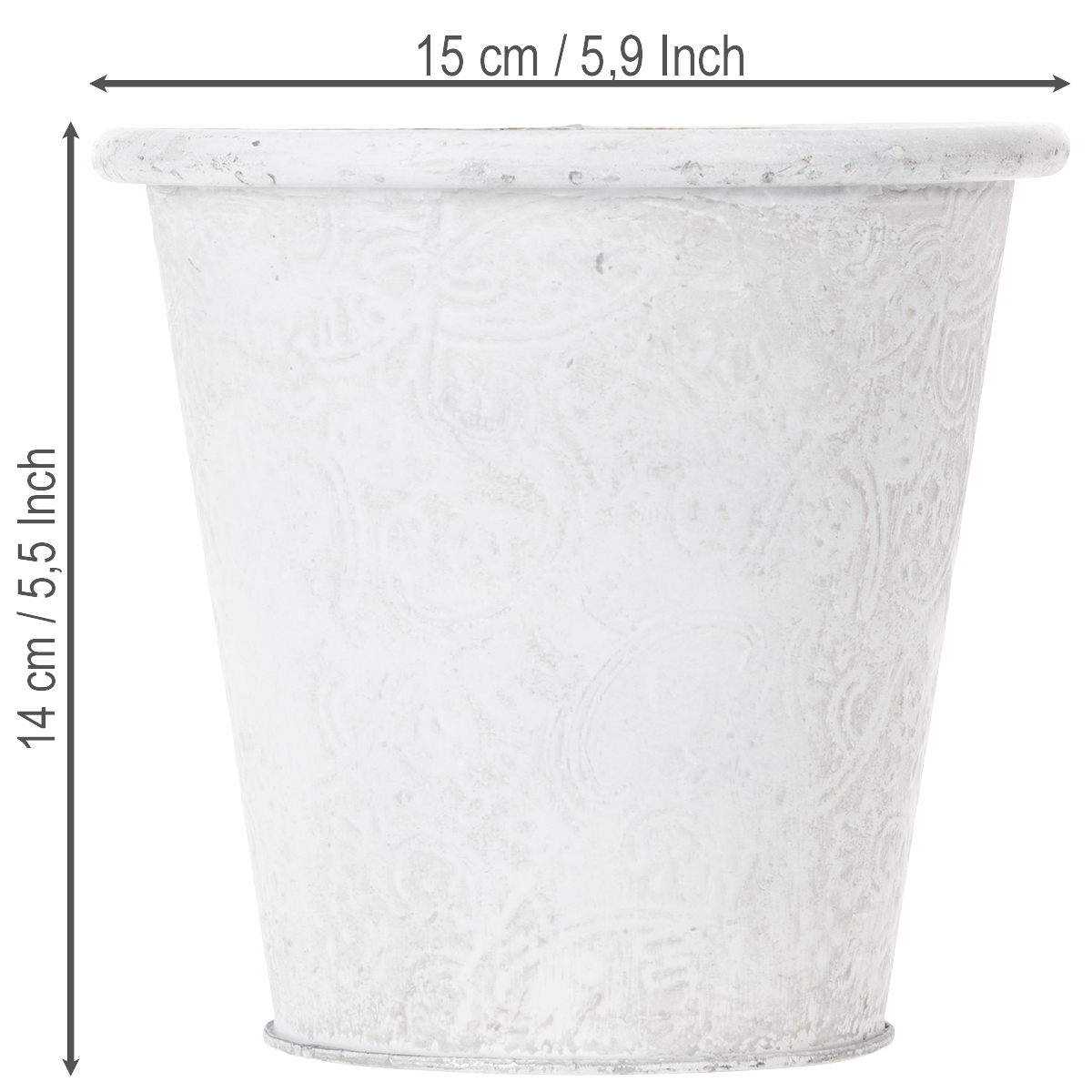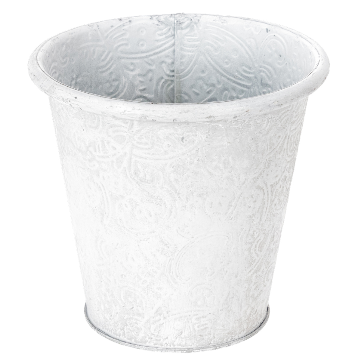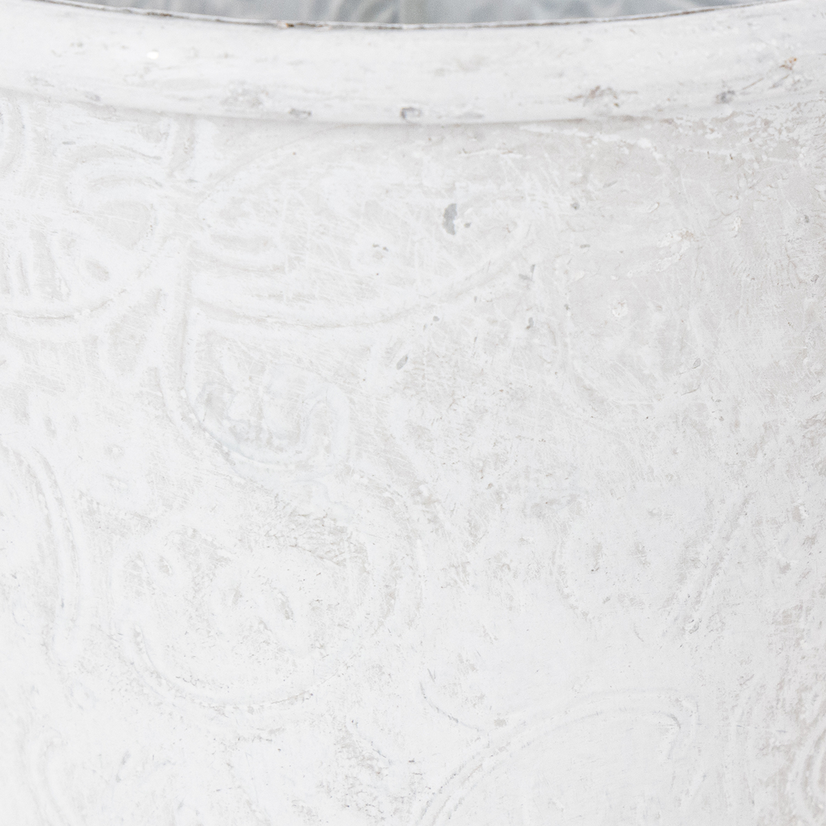 Blomkruka med ornament, kruka, metallbehållare, vit, Ø15,5 cm, H14,5 cm