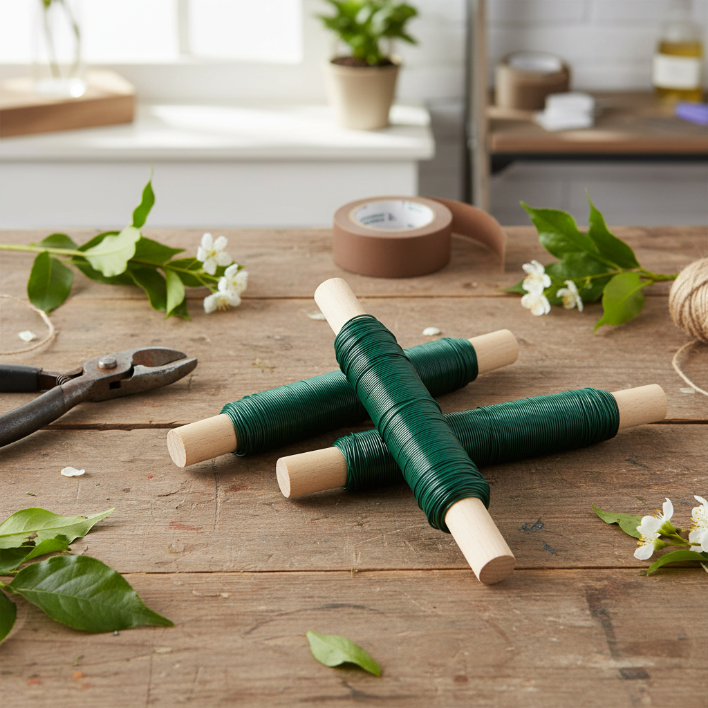 Bindtråd i grönt bör inte saknas i ditt blomsterbehov! Blomstråden kan användas särskilt bra som omslagstråd för kransar under advent, eftersom den förblir praktiskt taget osynlig i grangrönskan.