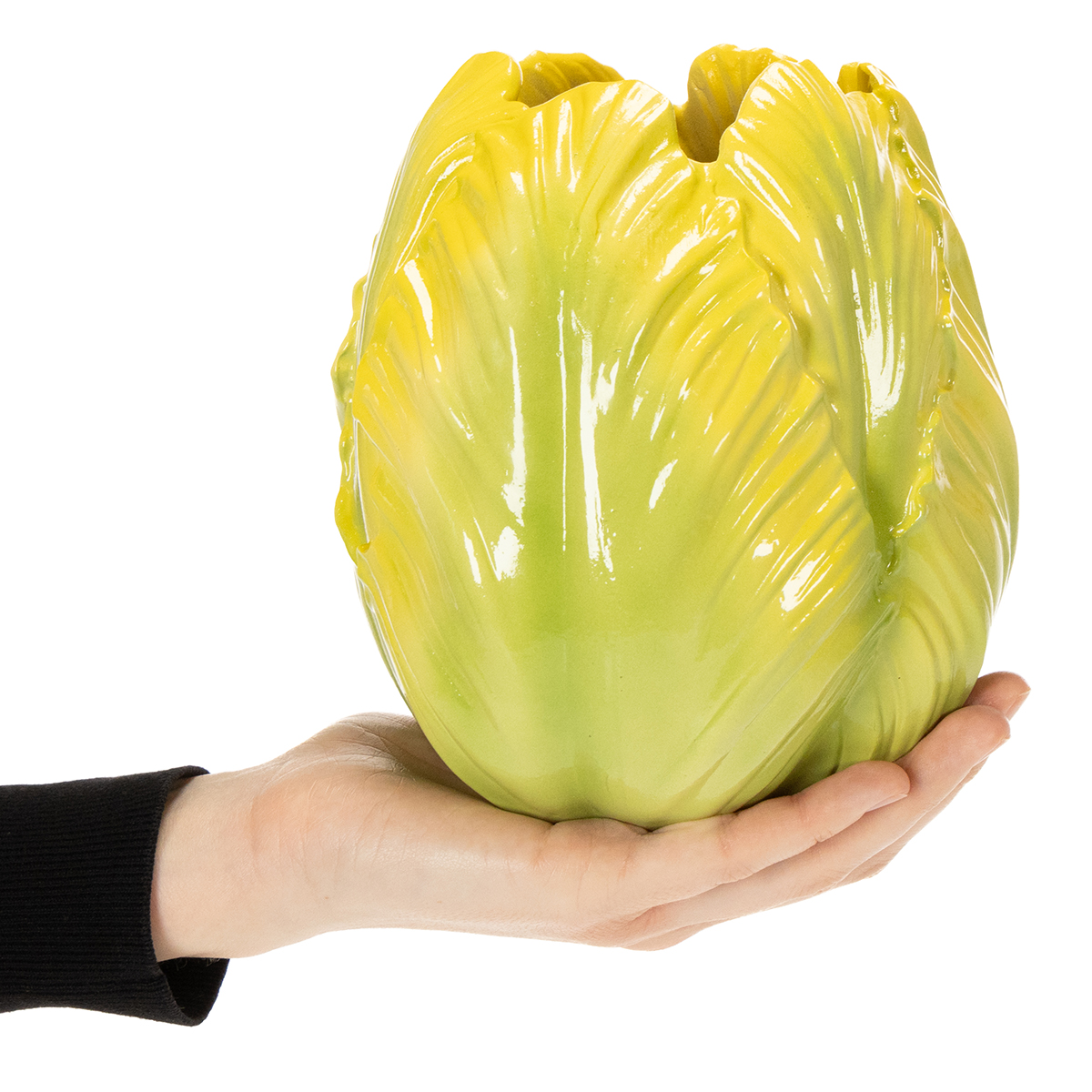 Denna vas är mer än bara ett hem för blommor – det är ett designmöbel som smälter harmoniskt in i alla vardagsrum. Dess slående form påminner om en blommande tulpan, med fint skulpterade, utspridda kronblad i en livfull gul och grön nyans. Detta ger vasen ett naturligt men ändå modernt utseende. Praktisk: vasen är tillverkad av polyresin och är hållbar och lätt att sköta. Oavsett om du arrangerar färska tulpaner, väldoftande hyacinter eller fina grenar, skapar vasen en harmonisk miljö. Den ser särskilt imponerande ut i kombination med andra accessoarer i samma färgpalett, såsom pastellfärgade servetter eller ljus med en subtil vårdoft. Tips: Detta vasset är också en utmärkt present. Presenteras med en bukett färgglada blommor garanterar den ett intryck. För en mer diskret look kan du fylla vasen med torkade blommor eller konstgjorda blommor i blommigt skum, eller till och med plantera något annat. På så sätt har du en snygg dekoration för hela året.