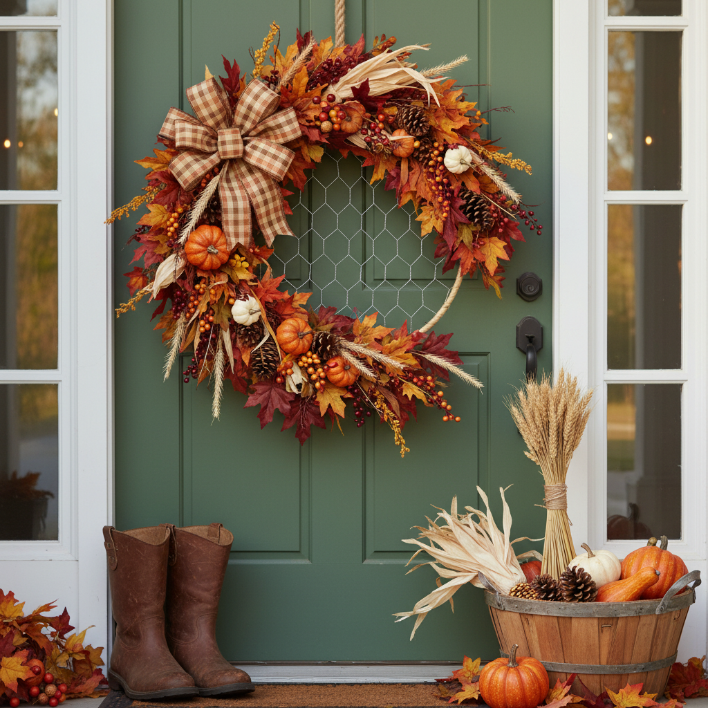 Den dekorativa metallringen är inte bara en visuell höjdpunkt, utan erbjuder också olika designalternativ. Den är täckt med raffia och har en struktur gjord av fint trådnät, vilket ger den perfekta basen för andra dekorativa element som torkade blommor, band eller konstgjorda blommor. Ringen hålls av en robust sladd, dekorerad med två snygga träpärlor som rundar av den övergripande designen.