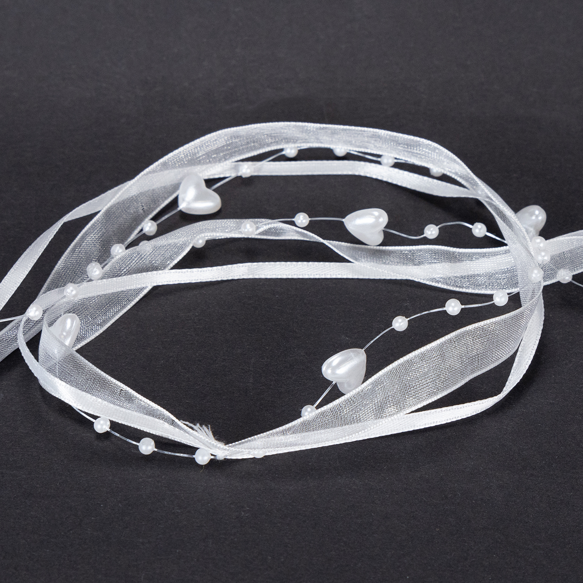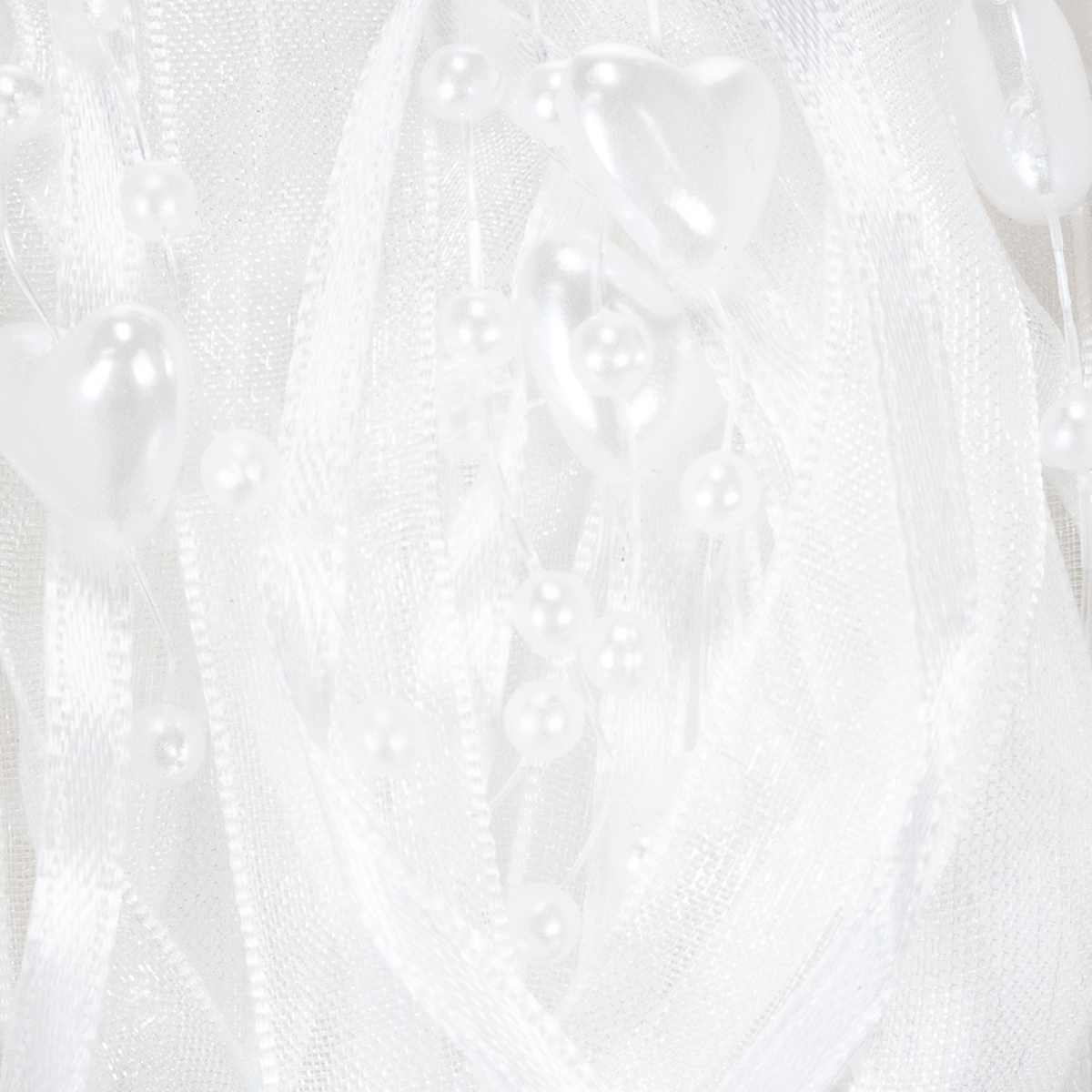 Bröllopsdekoration organzaband vitt 10mm x 5m med hjärtan och pärlor