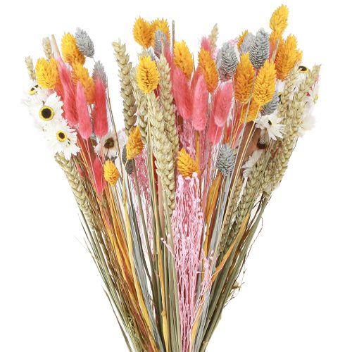 Bukett med torkade blommor och korn rosa gul blå 55cm