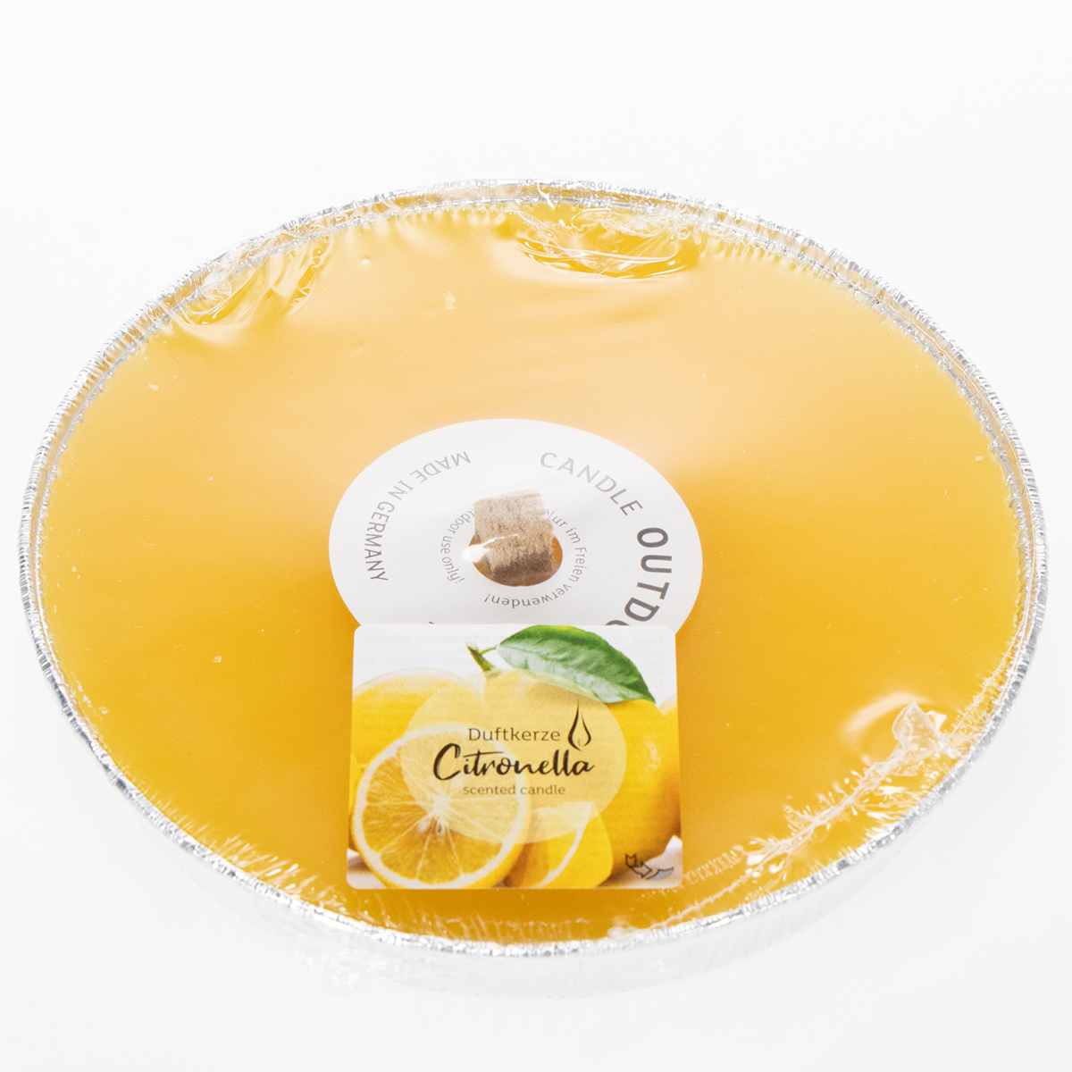 Vår citronellaflamskål är här för att göra dina sommarstunder ännu vackrare. Skenet från det gula doftljuset, i kombination med den intensiva men behagliga citronelladoften, ger ett väldoftande insektsmedel. Det varma ljuset skapar en mysig atmosfär som visuellt förbättrar din omgivning. Tack vare den robusta aluminiumskålen garanteras att vaxet inte läcker – vilket säkerställer säker användning på alla ytor, oavsett om det är ett träbord, stengolv eller gräsmatta. Särskilt fint på trädgårdsfester eller som en dekorativ accent på uteplatsbord: citronelladoftljuset kombinerar rustik stil med funktionalitet.