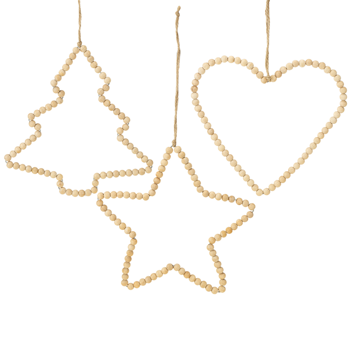 Deco hängare jul träpärlor hjärta stjärnträd H20cm 3st