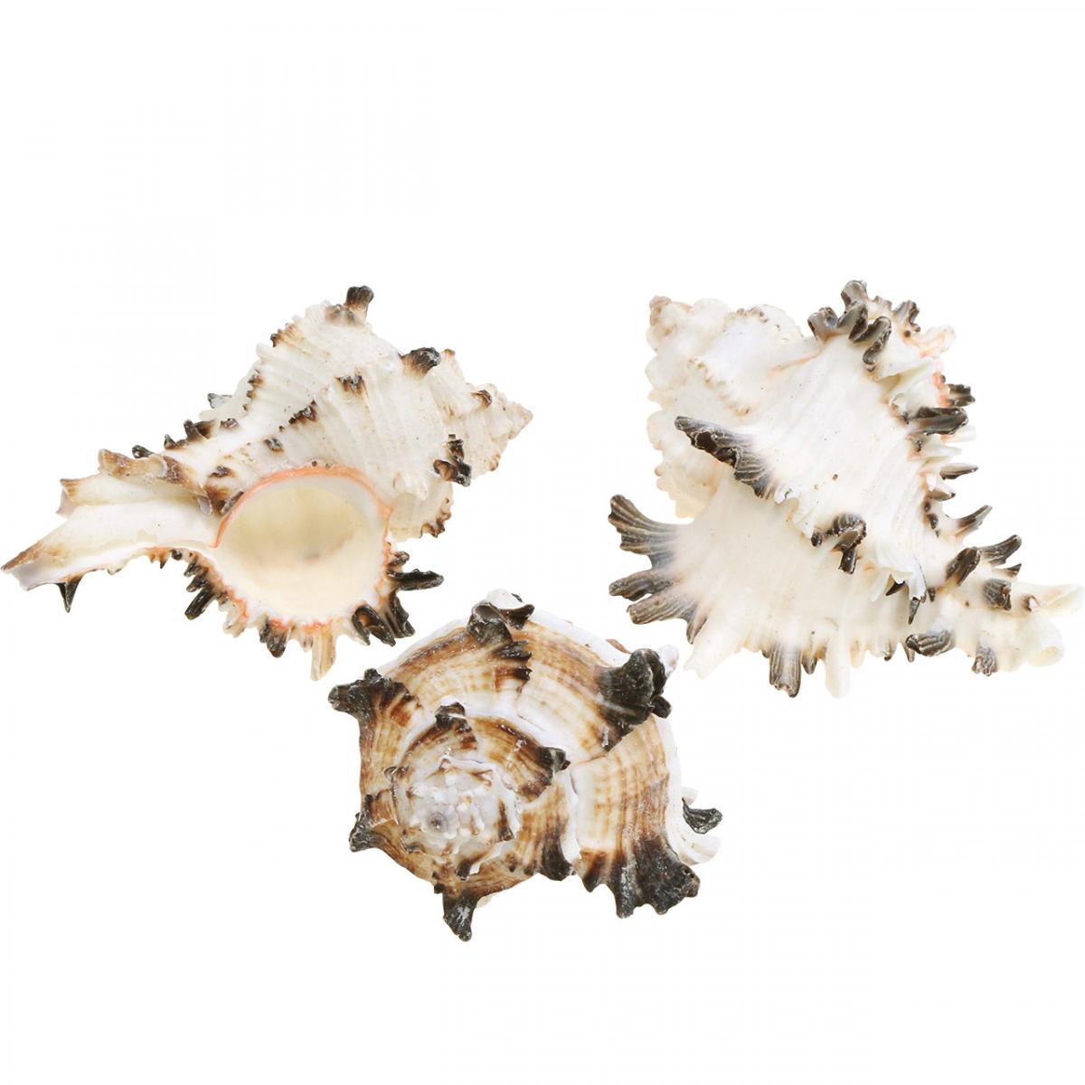 De vackra dekorativa snigelskalen väcker uppståndelse i den naturliga dekorationen. Havssnäckorna kommer från Indo-Stillahavshavets djup och tillhör släktet Murex, taggiga sniglarna. Skaldekorationens snövita och tabbyskal är extremt pittoreska. Varje naturlig snigel har noggrant utvalts, tömts och rengjorts för den exklusiva maritima dekorationen.