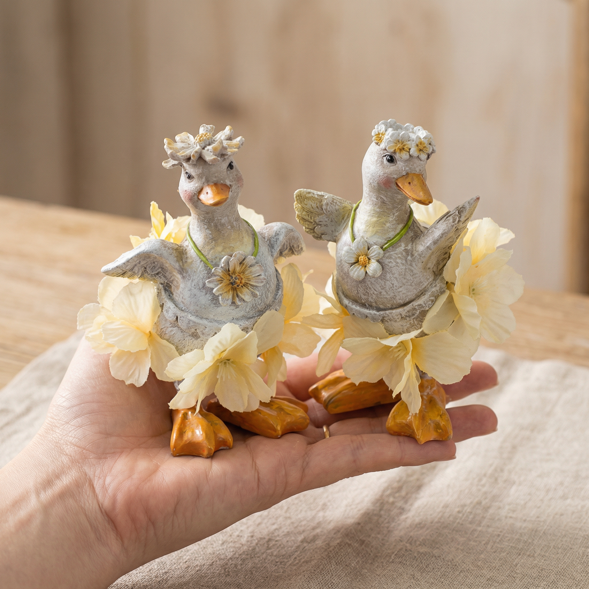 Integrerade i en skandinavisk eller modern miljö harmoniserar dessa fina ankor vackert med ljusa, naturliga material som trä och linne. De är perfekta som vår- eller påskdekorationer för att skapa en glad atmosfär.