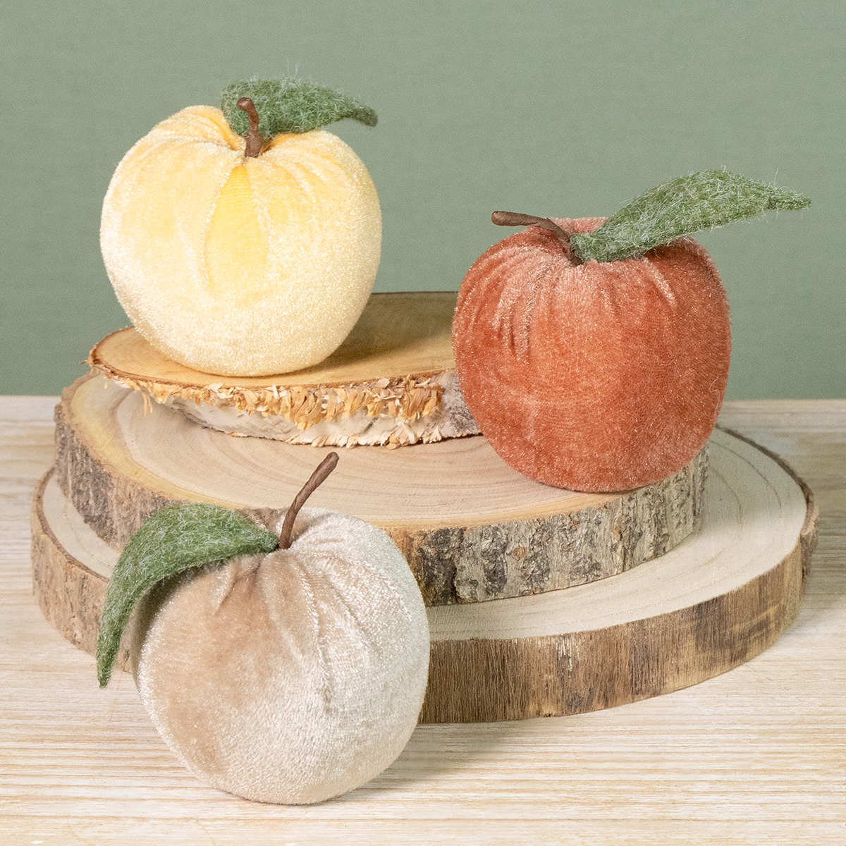 Sammetsäpplet i rödbrunt, beige och gult förkroppsligar inte bara höstens värme utan symboliserar också överflöd och skörd, vilket gör det idealiskt för säsongsbetonade firanden som Thanksgiving. Den lyxiga sammetsytan utstrålar elegans. Kombinera äpplena med matchande föremål som konstgjorda pumpor eller höstliga lövgirlanger från Floristik24 för att komplettera din inredning. De betonar den höstliga estetiken och skapar ett sammanhängande helhetskoncept. Oavsett om det är i en privat eller affärsmässig miljö, ger dessa dekorativa äpplen kreativa accenter och skapar en inbjudande atmosfär.
