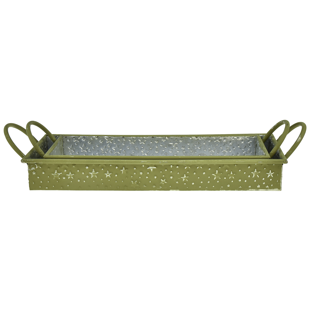 Dekorbrickan för jul i grönt med stjärnor i olika storlekar är inte bara funktionell, utan också en visuell höjdpunkt. Tillverkad av högkvalitativ metall och dekorerad med ett stjärnmönster, är den avlånga brickan perfekt som bas för din semesterdekoration. De två storlekarna erbjuder ett brett användningsområde och de robusta handtagen gör omarrangering enklare.