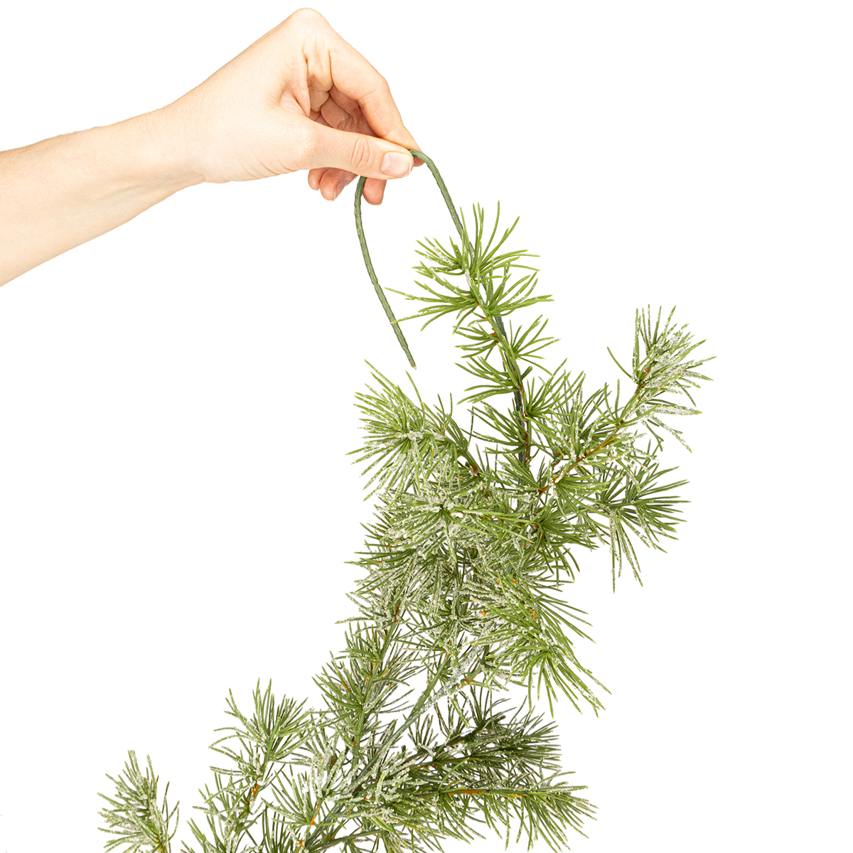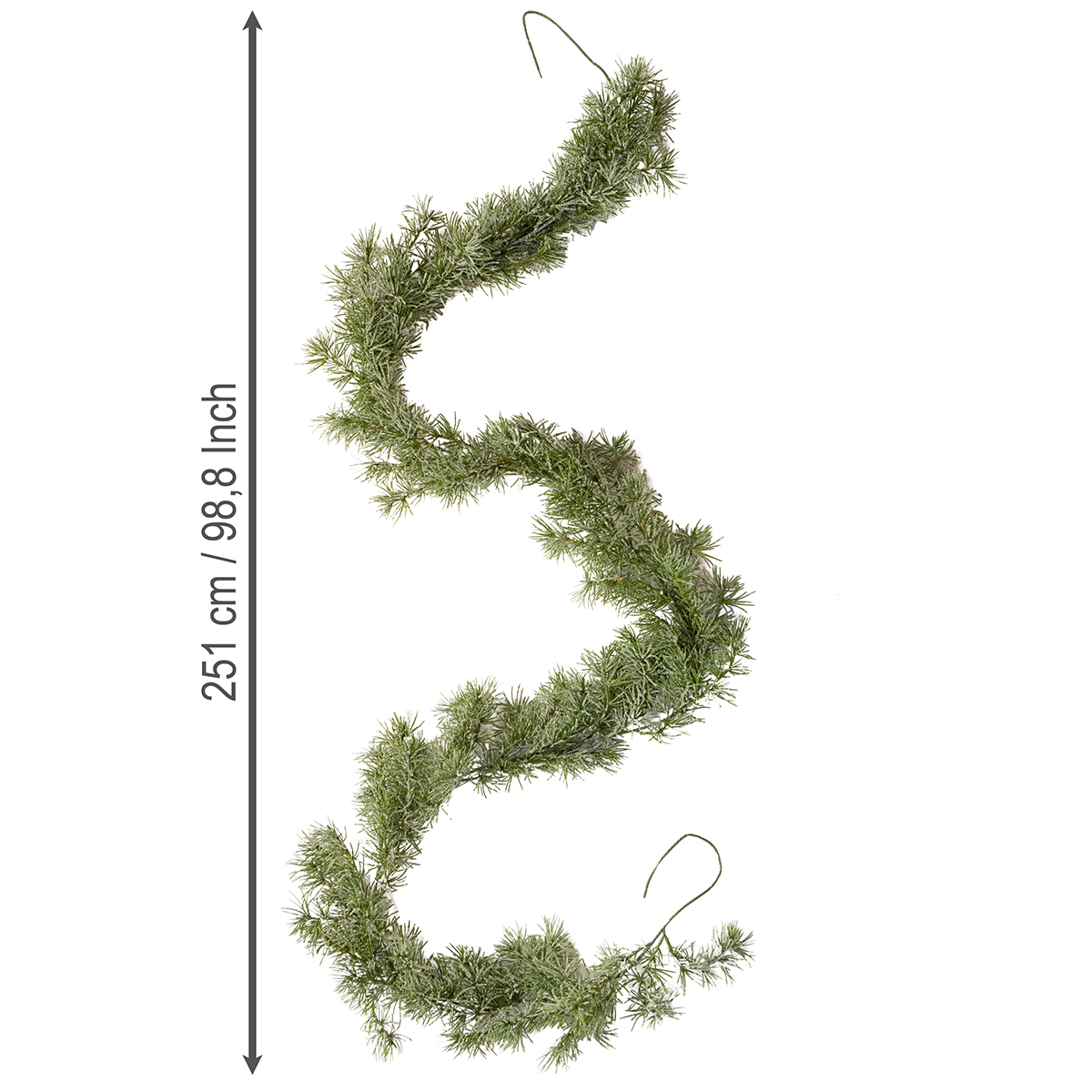 Denna dekorativa girlang imponerar med sin naturtrogna design: fina barr i imitationslärkträ i en fyllig grön färg, med ett frostat utseende som ger den en lätt frostig charm. Oavsett om den är dekorativt draperad ovanför en fönsterkarm eller används för att förvandla ditt trappräcke till ett riktigt blickfång, ser denna girlang snygg ut överallt. Tack vare sitt robusta plastmaterial kan du återanvända den i åratal utan att förlora kvalitet eller färgintensitet. Inget barrfall, ingen uttorkning – denna girlang i lärkträ håller sig som ny. Den är särskilt lämplig för dig som uppskattar miljövänlighet och praktisk användning utan att offra naturlig charm.