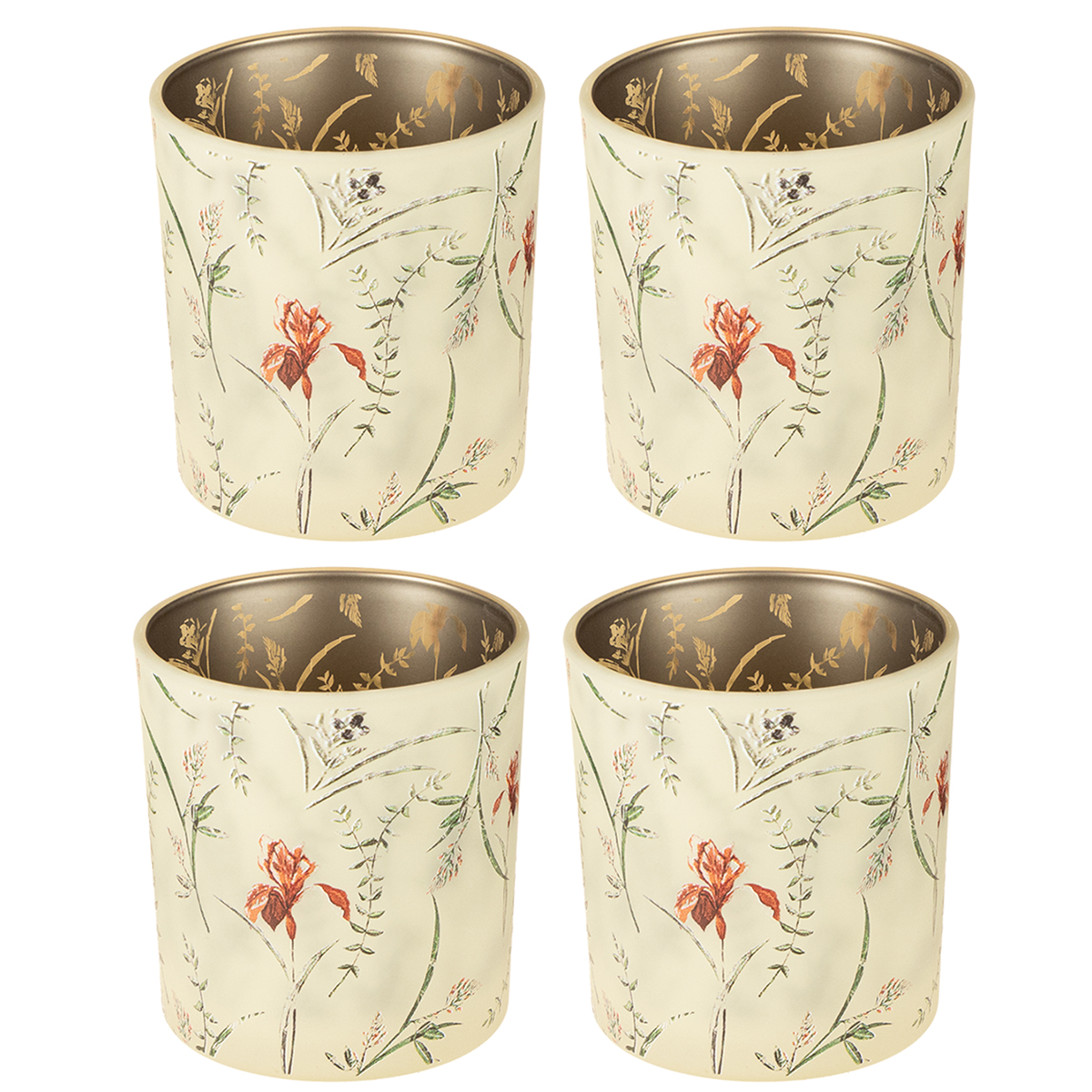 Dekorativ glaslykta med blommotiv för stämningsfulla heminredningsdetaljer, 8 cm, 4 stycken.