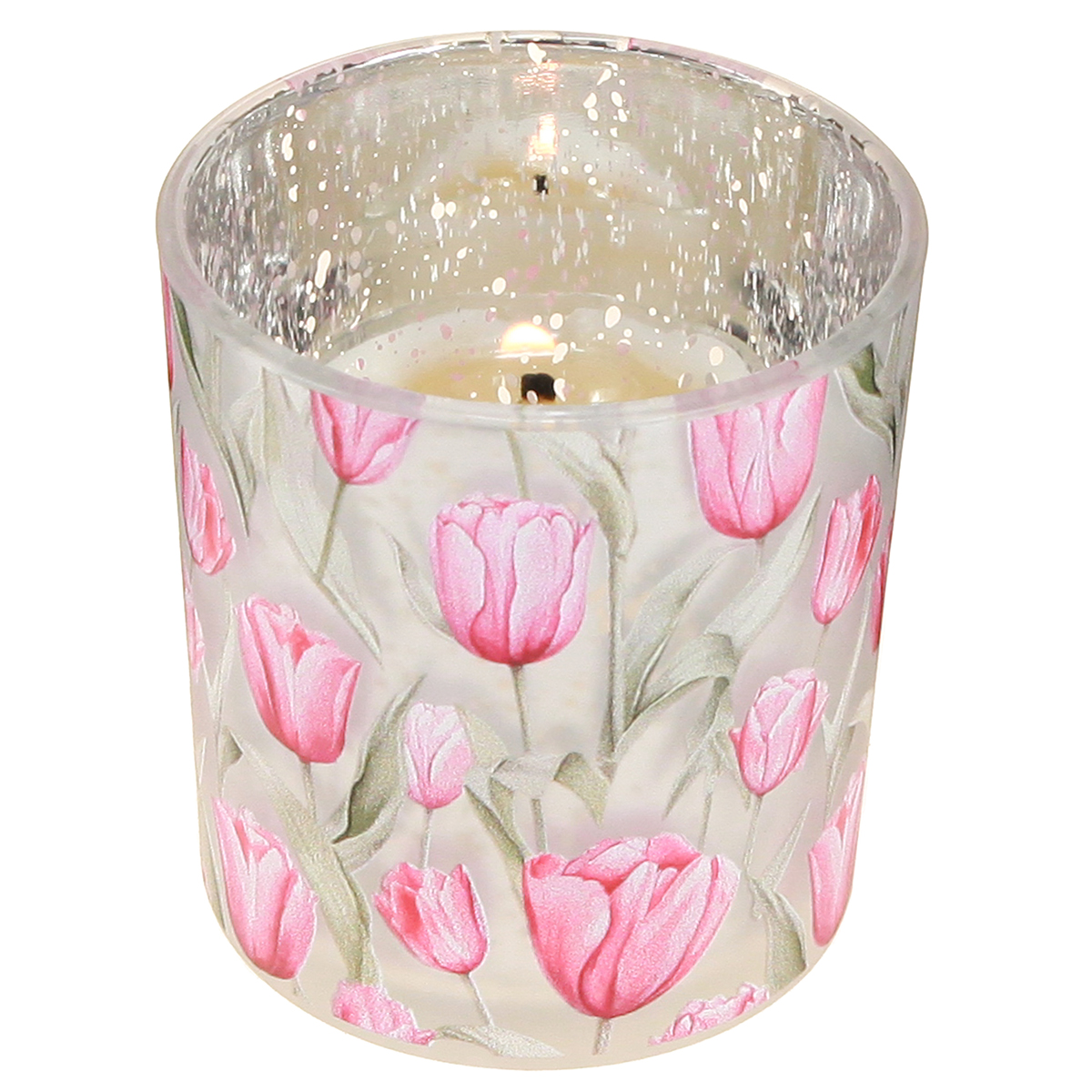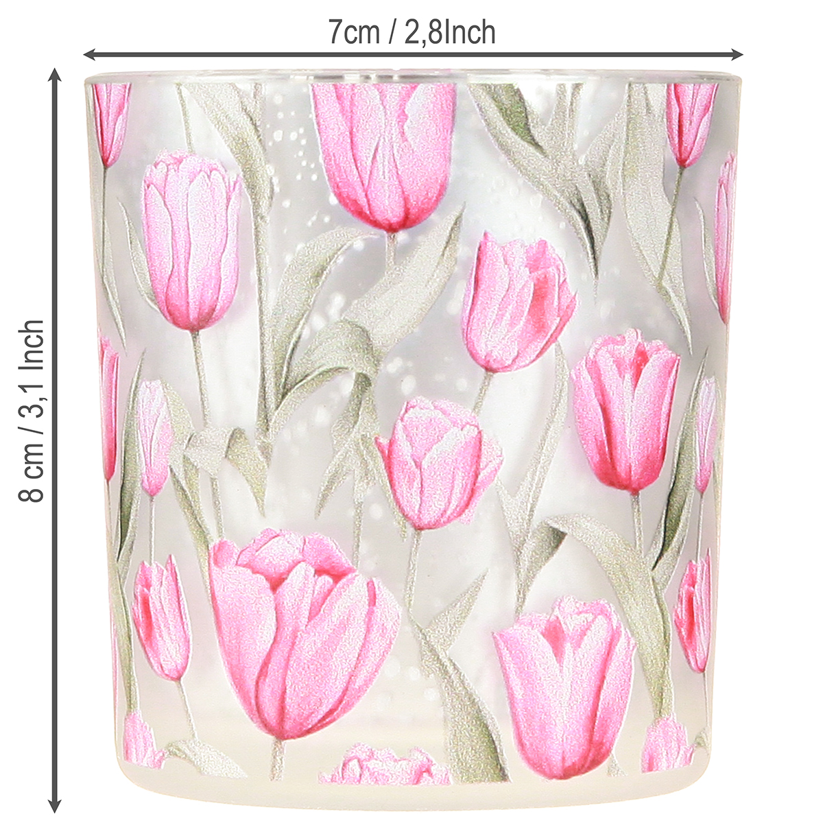 - Högkvalitativt glas med ett rosa tulpanmotiv