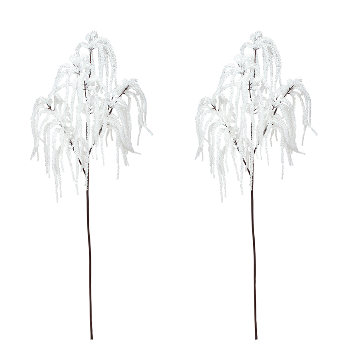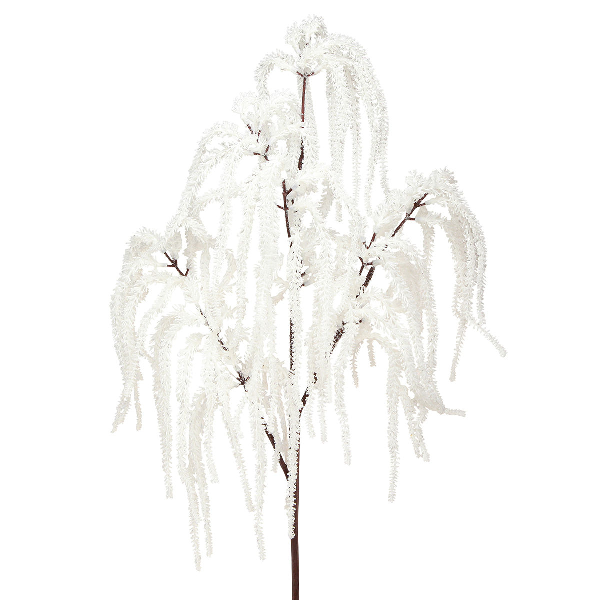 Gråtpilen (*Salix babylonica*) representerar ofta flexibilitet och anpassningsförmåga, eftersom grenarna förkroppsligar både styrka och flexibilitet. I vinterversionen symboliserar denna dekorativa gren stabilitet och evig skönhet, perfekt för festliga tillfällen under den kalla årstiden. Användningen av vitt och glitter förstärker dekorationens festliga och rena karaktär. Vitt representerar traditionellt renhet, oskuld och frid och ger lugn till helgernas liv och rörelse.