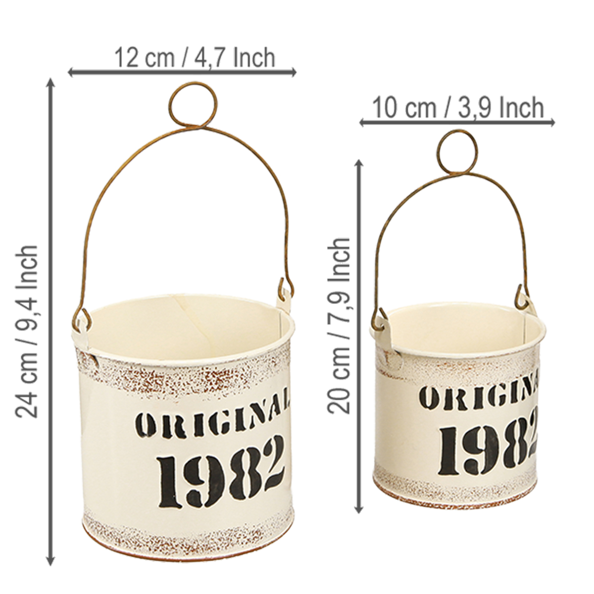 Dekorativ hink med handtag “Original 1982” Krämfärgad Ø12/10cm 2×2-delat set