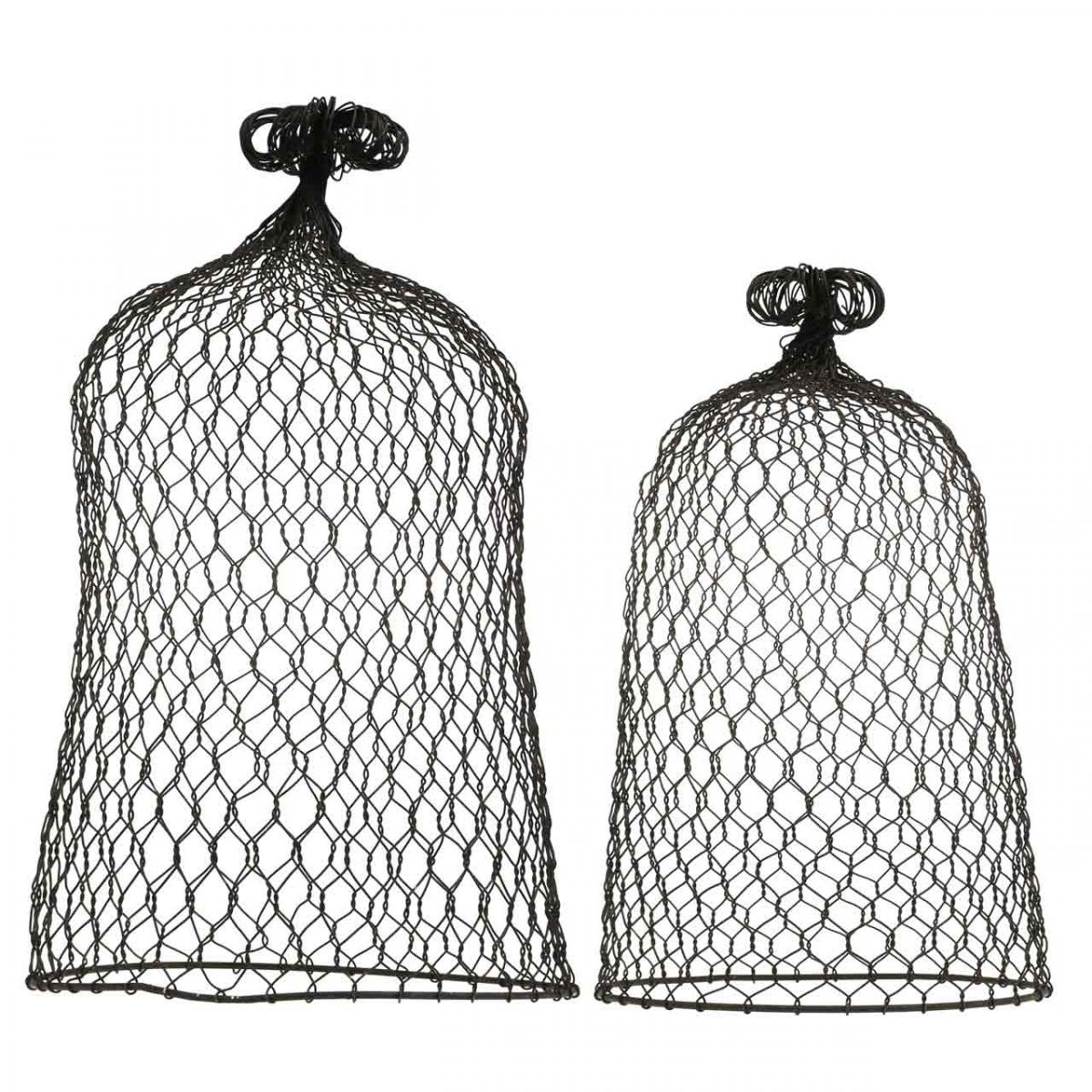 Tillverkad av mörkbrun metalltråd och lätt dekorerad med patina på sina ställen, setet med två metallklockor finns i två storlekar och har även ett handtag för lyft.