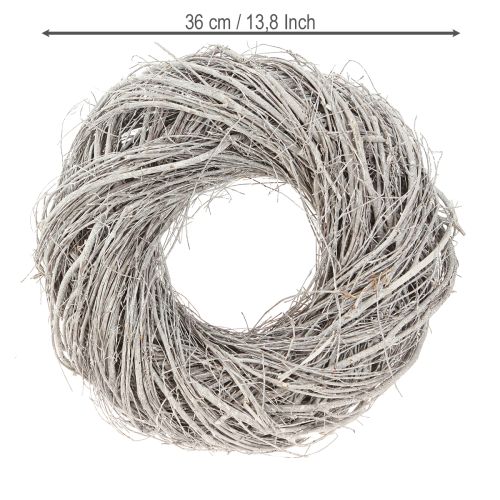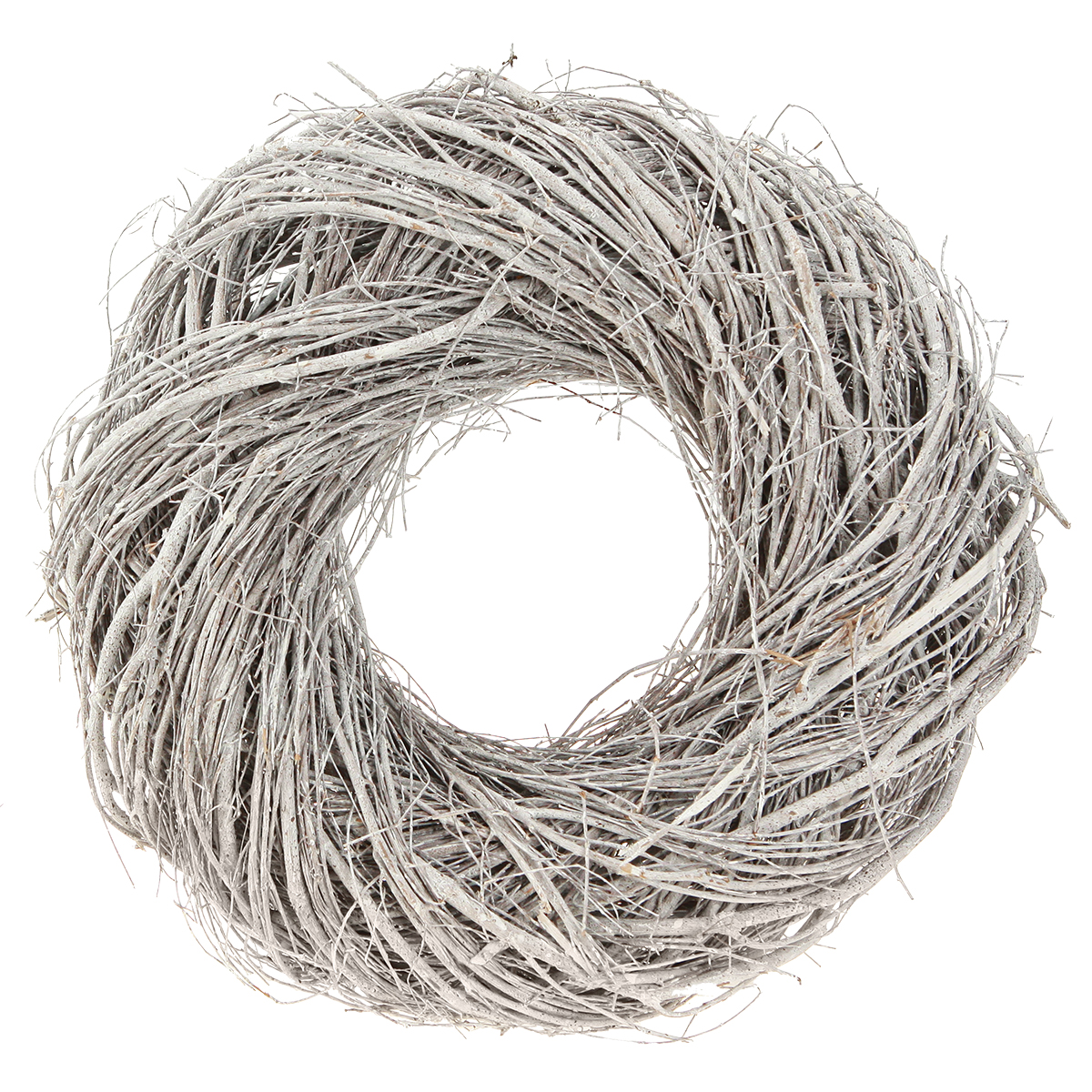 Dekorativ krans av almgrenar, vitgrå tvättad Ø35cm