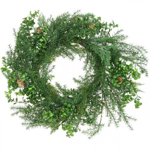 Dekorativ krans med barrgrenar, kottar och lådgrön 60cm