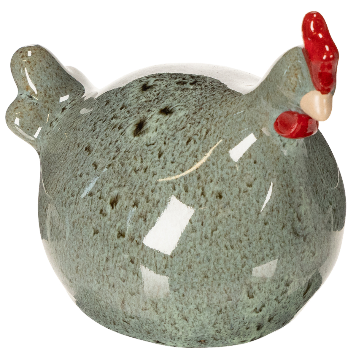 Dessa två dekorativa kycklingar i en glad grön nyans imponerar med sin harmoniska kombination av enkla former och rustik charm. Varje figur är omsorgsfullt tillverkad av högkvalitativ keramik och har en slät yta som vackert accentuerar dess mjuka färg. Med sina praktiska måtten 13 x 9 x 11 centimeter passar kycklingarna perfekt in i vilken inredning som helst. De röda detaljerna på deras kammar och näbbar ger en charmig, livfull touch som lyser upp vilken miljö som helst.