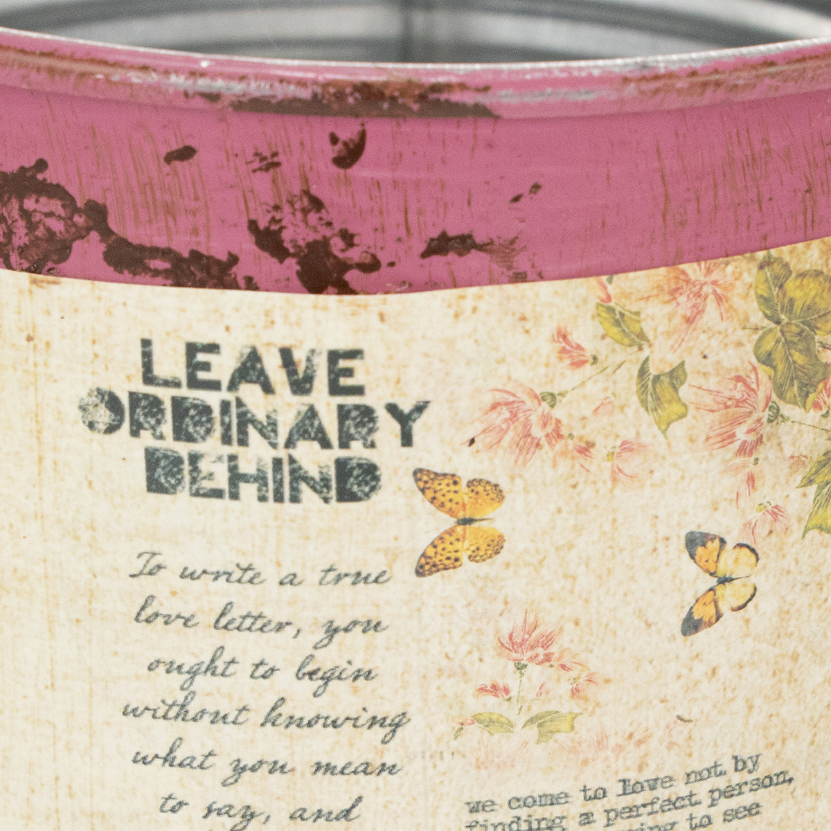 Den dekorativa plåten i lila av metall kommer att bli en nostalgisk accessoar i din sommardekoration! Plåtburken för plantering kan även användas som cachepot eller dekoration inom industridesign. På utsidan ser planteringsmaskinen vackert rostig ut på grund av den smarta appliceringen av flera lager färg - en stor kontrast till den starka, ljuslila! Faktum är att metalldekorationen är helt ny: insidan lyser silver och har inga kanter. Äntligen, en retroetikett på den dekorativa plåten transporterar dig helt in i vintageträdgården.