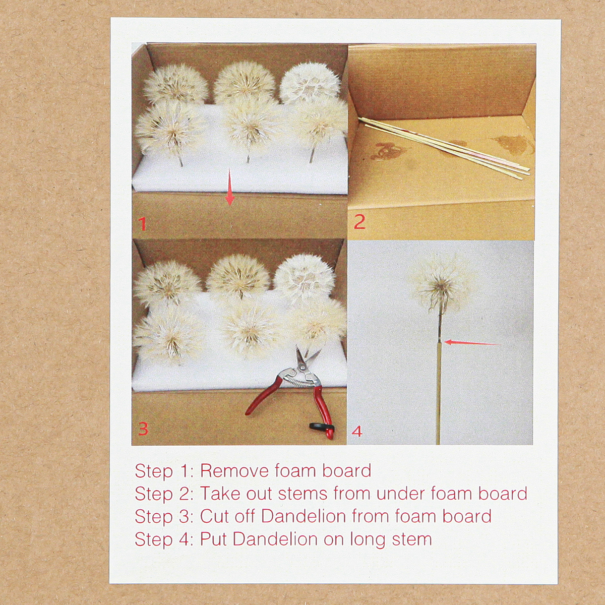 - Kombinera maskrosorna med våra torkade blommor för ett individuellt arrangemang.