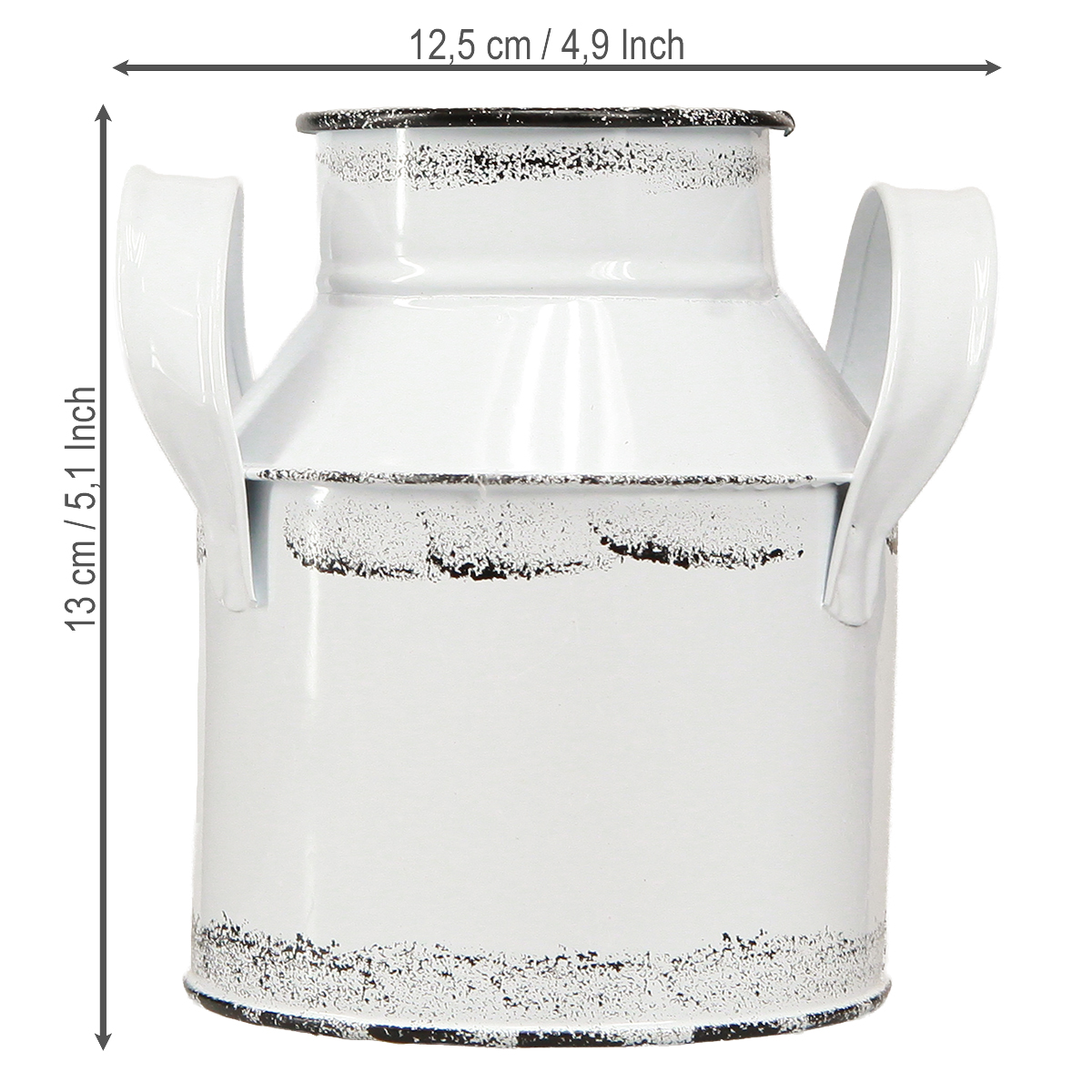 Dekorativ metallkanna med handtag, vit och svart, 13 cm hög, 2 stycken