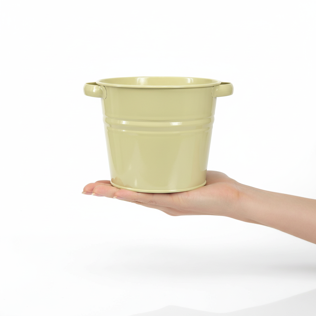 Denna dekorativa metallkruka i en fräsch grön-gul ger moderna accenter till ditt hem. Med sina imponerande mått på cirka 31 x 26 x 21,5 cm och de praktiska sidohandtagen, ger denna blomkruka både funktionalitet och stil till inomhus- och utomhusområden.