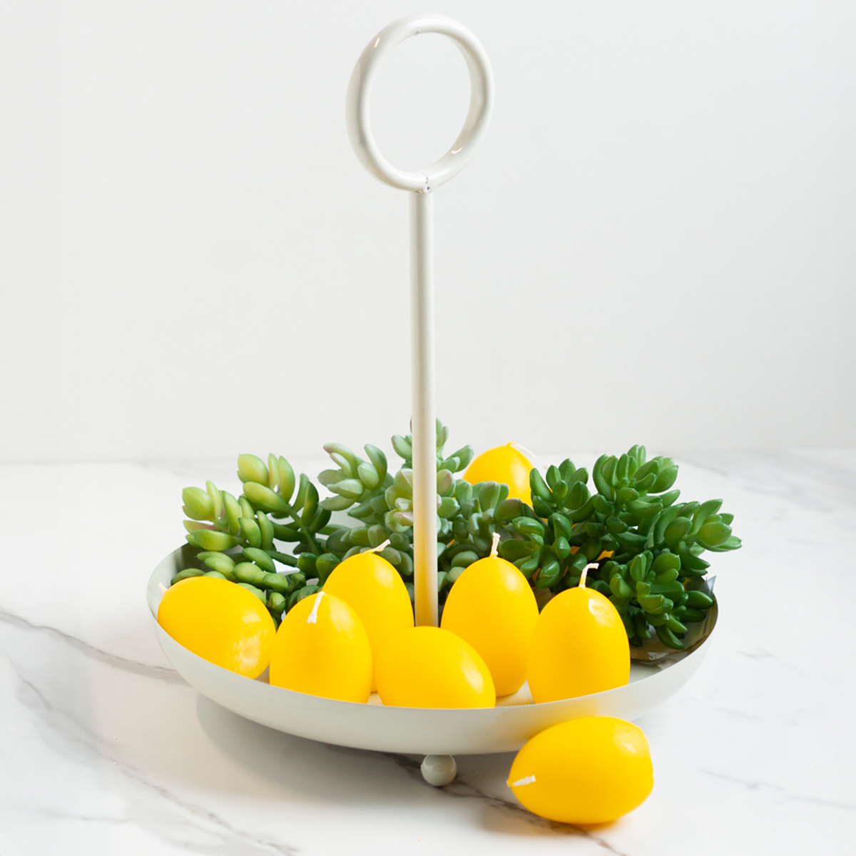 Det robusta metallhandtaget är inte bara visuellt tilltalande utan också praktiskt – perfekt för att enkelt bära skålen. Skålen är också idealisk för att organisera småsaker som nycklar, smycken eller andra småsaker. För blomster- och gör-det-själv-entusiaster är det den perfekta basen för att skapa säsongsbetonade arrangemang.