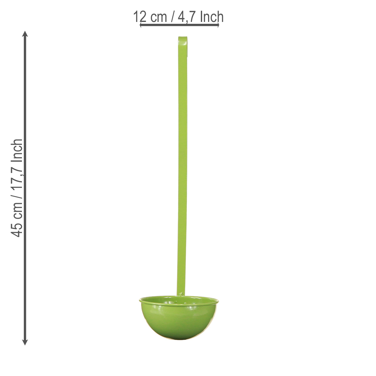 Vad gör en hängande dekorativ slev så speciell? Denna charmiga gröna soppslev ger en speciell touch till vilket rum som helst. Oavsett om den är i köket, vardagsrummet eller till och med trädgården – den garanterar att fånga allas blickar. Med sina 45 cm är den ett slående men ändå elegant tillbehör som kombinerar klassisk funktionalitet med modern elegans. Upptäck hur en enkel metallslev kan bli ett riktigt blickfång! Letar du efter något rustikt för att lysa upp din vardag? Denna gröna dekorativa slev får poäng med sin originella design och praktiska användningsområden: vare sig det är som örthållare i köket, dekorativ blomkruka eller rustik väggdekoration i vardagsrummet. Den livfulla gröna färgen kombinerar fräschör och naturlighet. Perfekt för alla som älskar något speciellt!