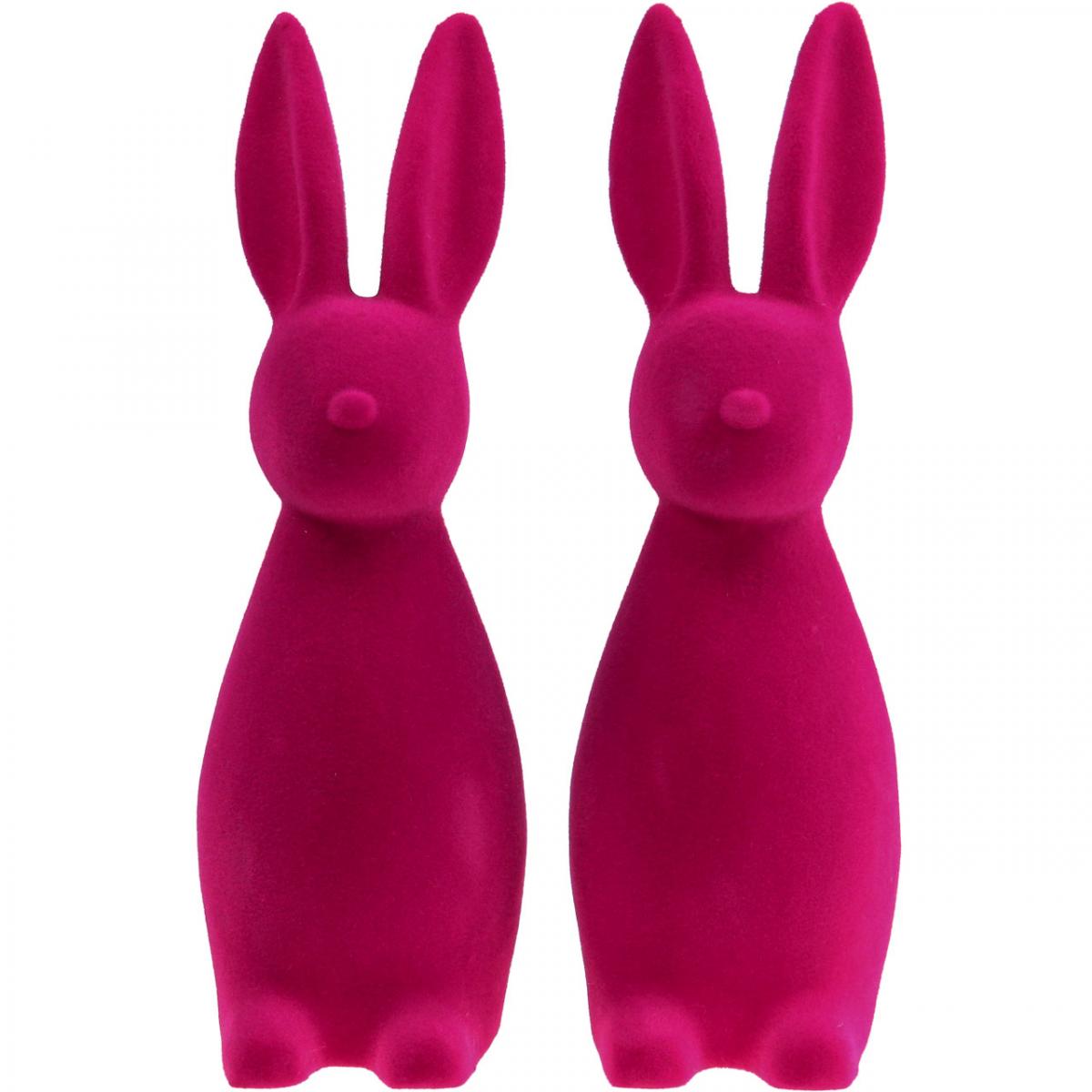Produktnamn: Dekorativ påskhare, flockad rosa, 29,5 cm hög, 2 stycken