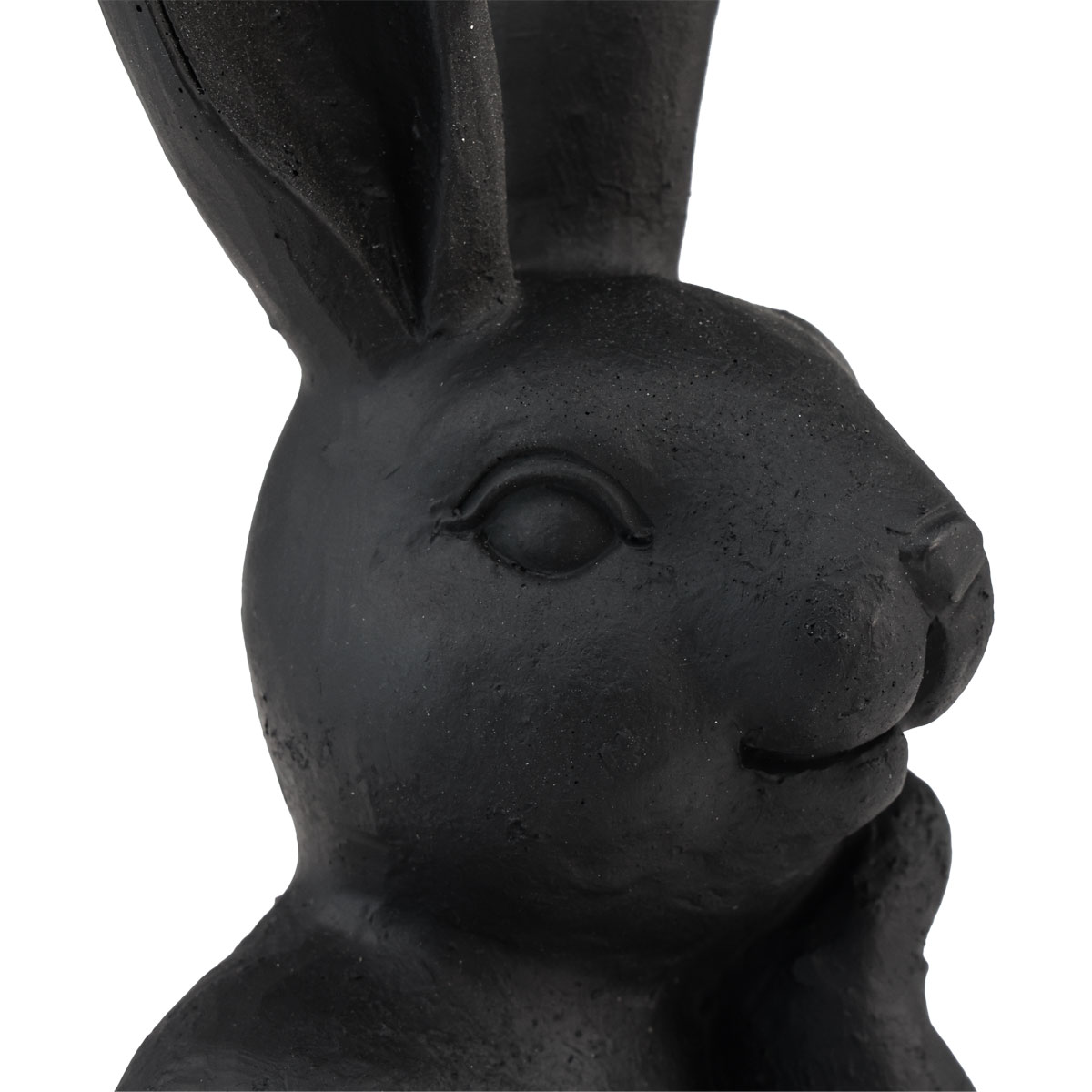 Påskharen ler trots sin tankeställning och är målad mattsvart. Med de långa öronen och det detaljerade ansiktet ser den dekorativa figuren väldigt livlig ut. Den svarta färgen ger dock kaninen elegans.
