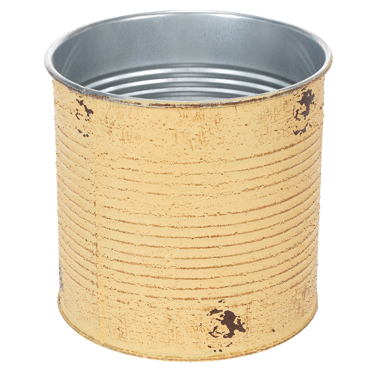 För plantering bör du fodra dekorlådan i aprikos med folie, tänka på dränering och, om den installeras utomhus, borra hål i marken för att dränera överflödigt vatten. Den rustika plåtburken finns även i olika pastellfärger och andra storlekar.