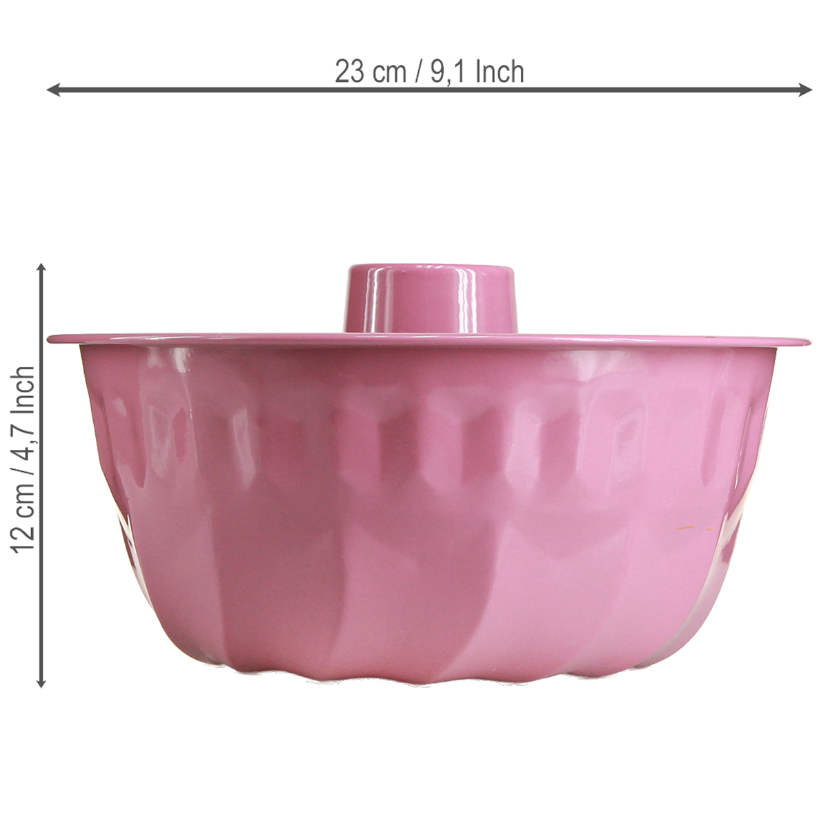 Dekorativ skål i metall, bakform, Bundt-form, rosa, Ø23 cm, H12 cm