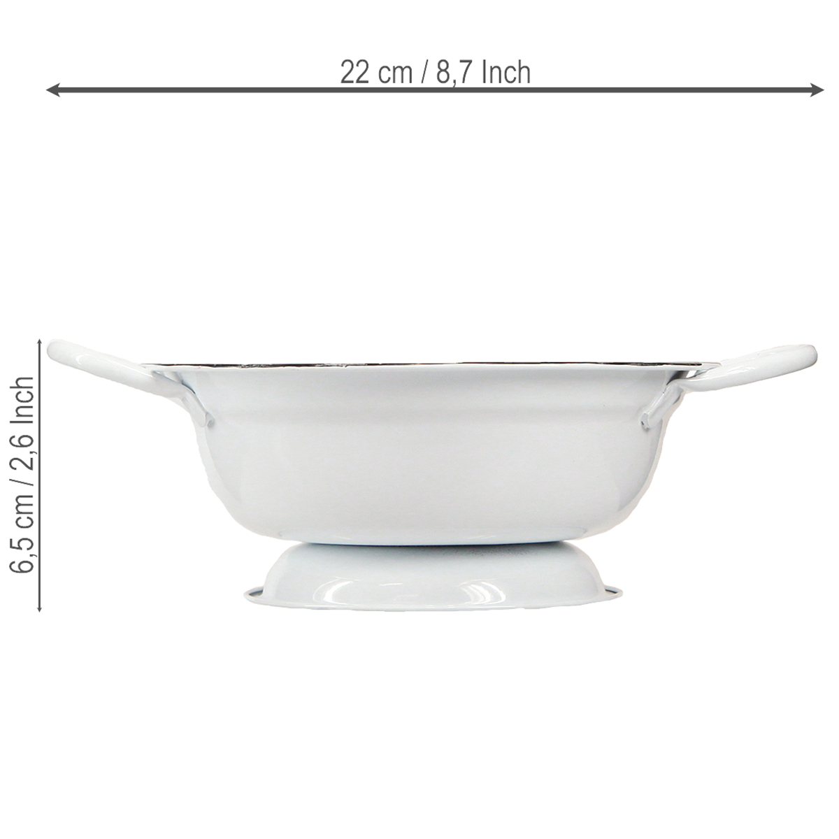 Upplev den perfekta kombinationen av funktionalitet och estetik med vår metallskål som dekoration i vitt och svart. Dessa eleganta dekorativa skålar imponerar med sin minimalistiska design: vit emaljlook med en fin svart kant. De charmiga handtagen ger inte bara skålarna en praktisk användning utan understryker också den moderna, skandinaviska stilen. Denna uppsättning med fyra skålar är den perfekta följeslagaren för dina inomhusdekorationer och trädgårdsfester. Speciellt designade för att användas som dekorativa föremål, ger de en tidlös elegans till alla rum eller tillfällen, oavsett om det är ett förvaringsalternativ i hemmet. Utforska de oändliga möjligheter som dessa skålar erbjuder och dekorera ditt hem eller evenemang med en touch av stilfull enkelhet.