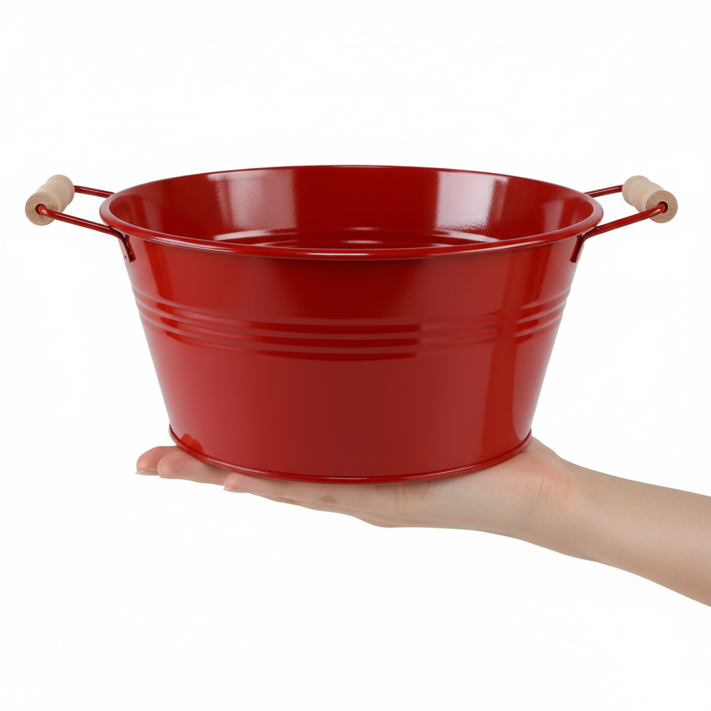 Dekorativ skål med handtag, blomskål i metall, röd, Ø29cm, H14,5cm