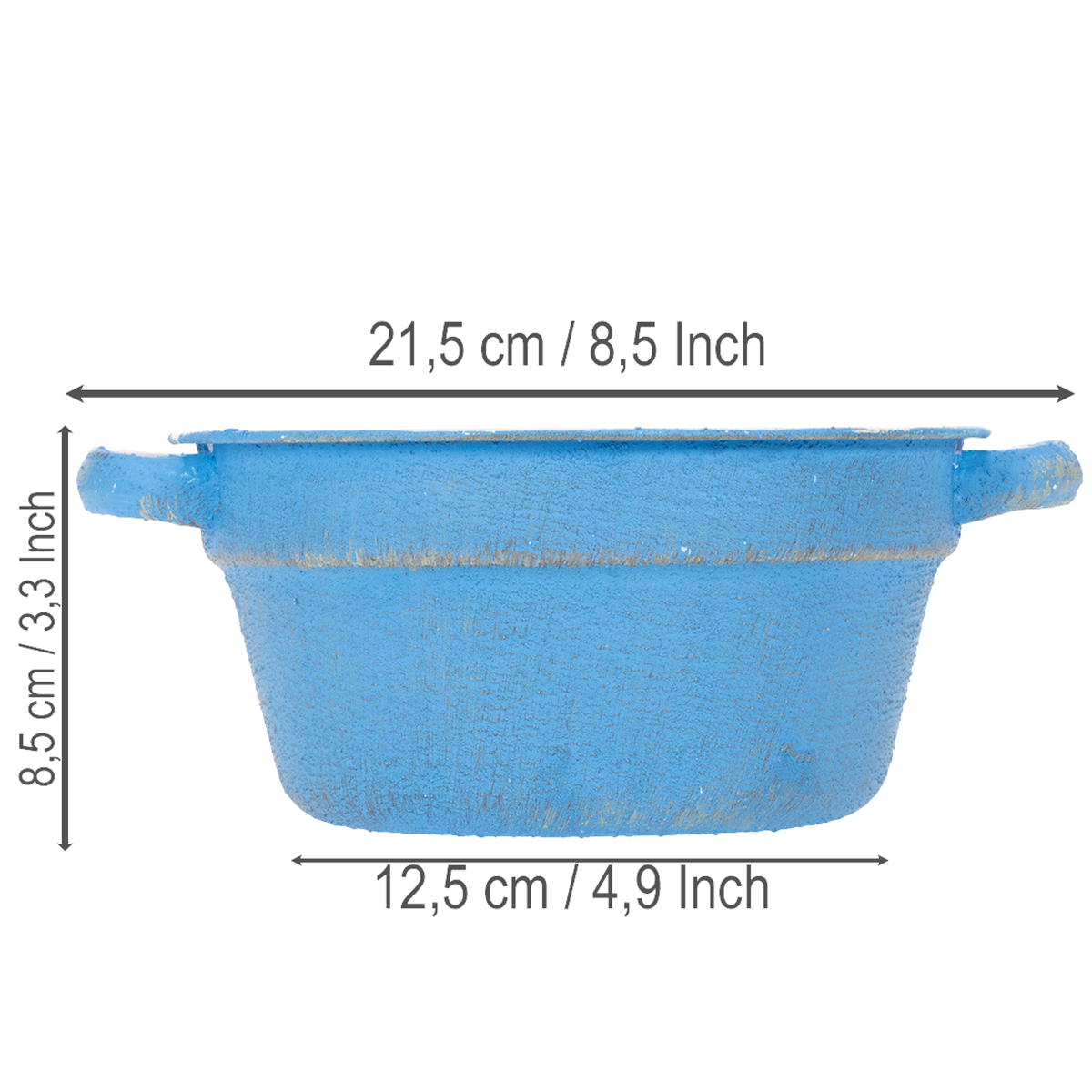 Dekorativ skål/planter, blå metall, shabby chic-inredning, Ø17 cm, H8,5 cm