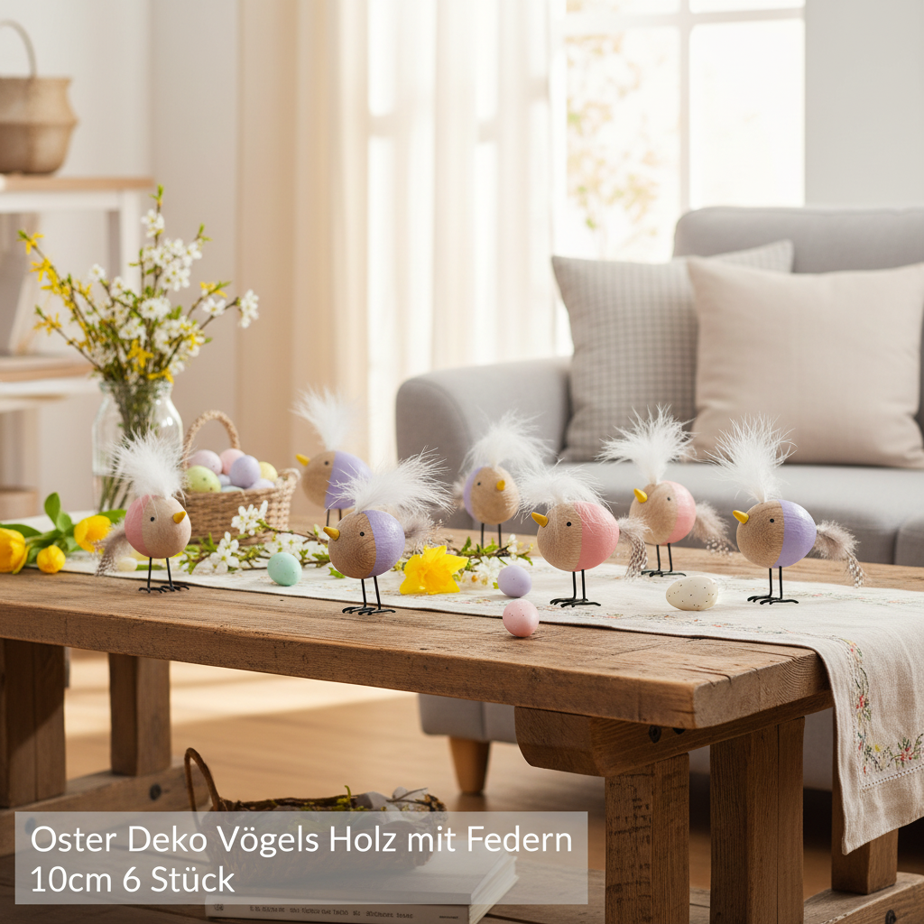Kombinationen av naturligt trä, fint hantverk och livfulla färger gör detta dekorativa set verkligt speciellt. Dessa små fåglar är inte bara lätta att placera utan också otroligt mångsidiga. Förpackade som ett set om sex, är de perfekta för att förverkliga dina dekorationsidéer. Upptäck de många möjligheterna: en färgglad accent på ditt påskbord, det perfekta komplementet till dina vårdekorationer eller en omtänksam present till dina nära och kära.