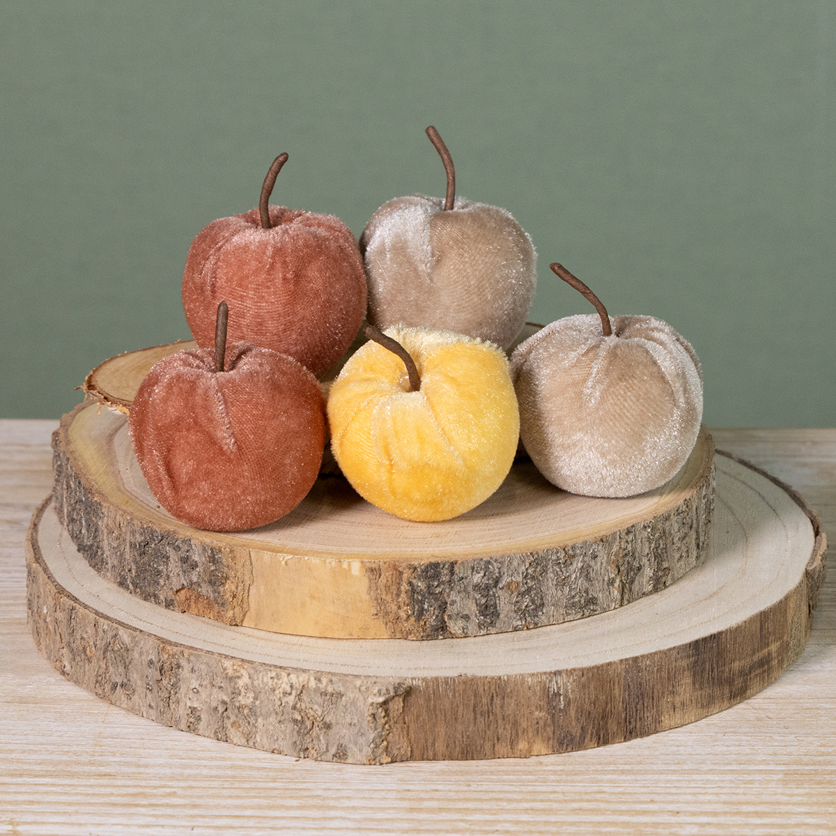 I linje med säsongens nostalgiska charm erbjuder dessa sammetsklädda dekorativa frukter ett underbart sätt att berika din inredning med höstliga färger och textila texturer. De är perfekta att använda som dekorativa element i presentkorgar eller presentinslagning för att ge en personlig touch till dina skapelser.