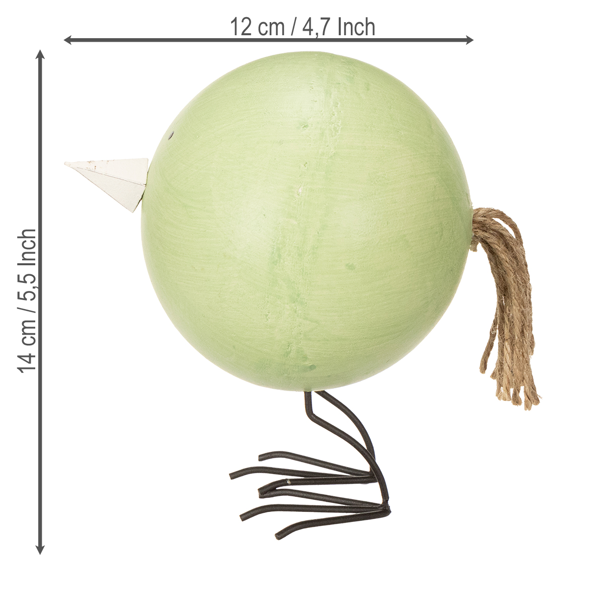 Dessa dekorativa kycklingar imponerar med sitt högkvalitativa hantverk och sin mångsidighet. Kombinationen av naturmaterial som trä och metall smälter vackert in i en mängd olika inredningsstilar. Den runda träkroppen har ett harmoniskt och naturligt utseende, medan näbben och metallbenen ger en elegant kontrast. De diskreta pastellfärgerna gult, rosa och grönt gör dessa kycklingar till en tidlös favorit som enkelt kan kombineras med andra vår- och påskdekorationer.