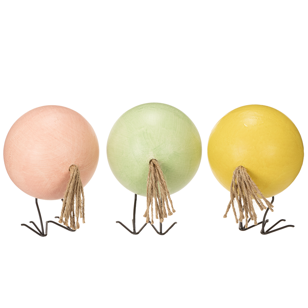 Låt oss vara ärliga – vad vore påsken utan lite glad dekoration som lyser upp våra hem? Detta charmiga set med tre dekorativa kycklingar ger en touch av vår direkt till ditt vardagsrum. Med sina träkroppar och söta metallfötter kommer dessa små kycklingfigurer i pastellnyanser av gult, rosa och grönt garanterat att få dig att le. Deras lekfulla, minimalistiska design gör dem perfekta för vilken hylla som helst i vardagsrummet, som mittpunkt i din matsal eller på fönsterbrädan på ditt kontor.