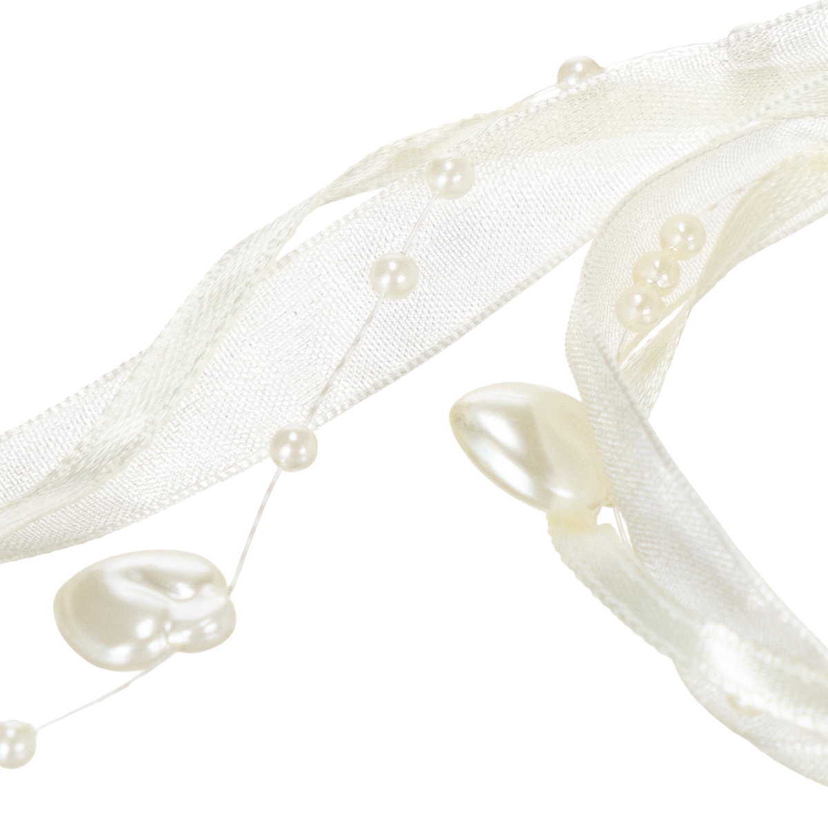 Produktnamn: Dekorativt band, krämfärgat, hjärtan, pärlor, bröllopsdekoration, 10mm, 5m