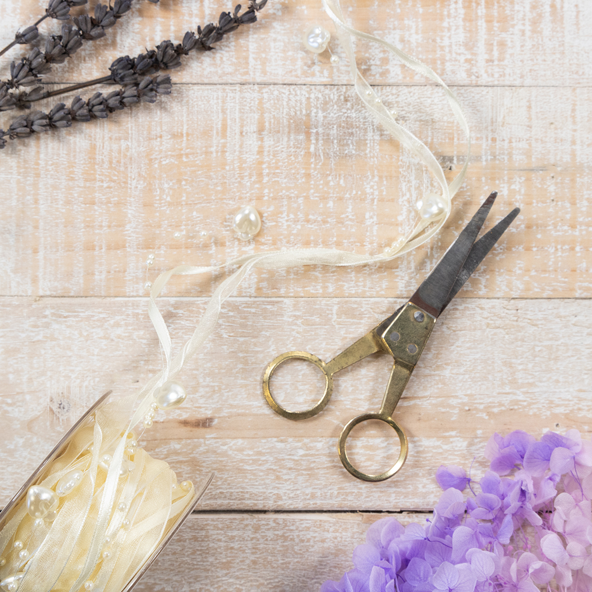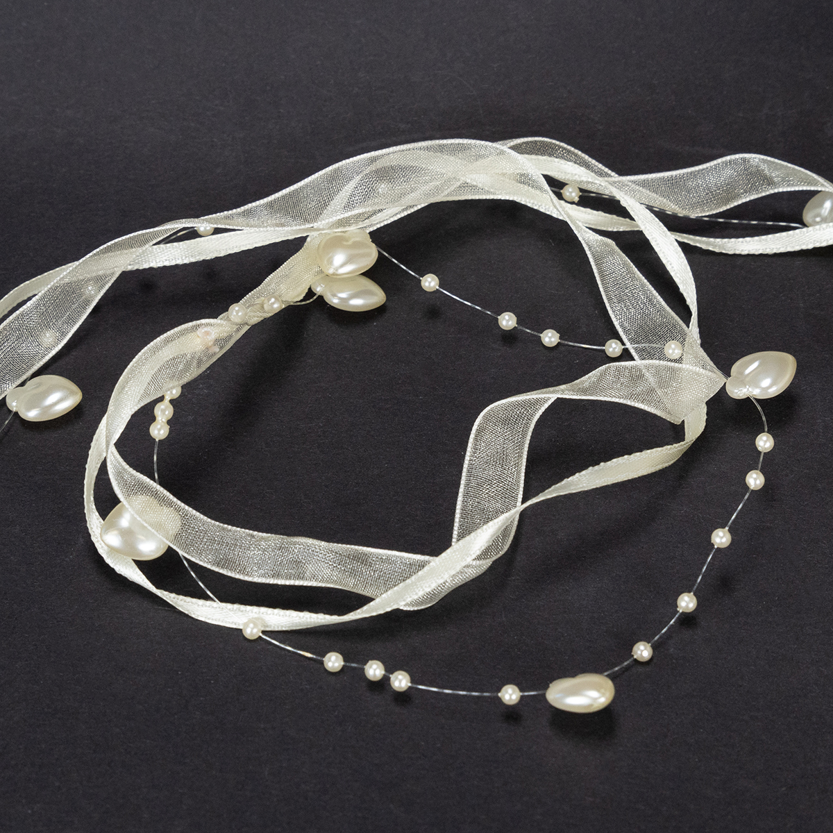 Sidenbandet har designats med stor uppmärksamhet på detaljer och består av ett halvtransparent band med en kant. Den pärlemorska glansen på bandet, hjärtan och pärlor utstrålar en glamorös charm.