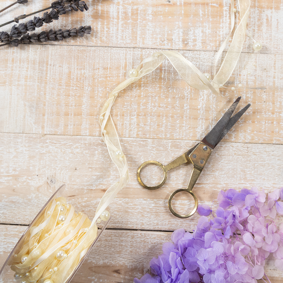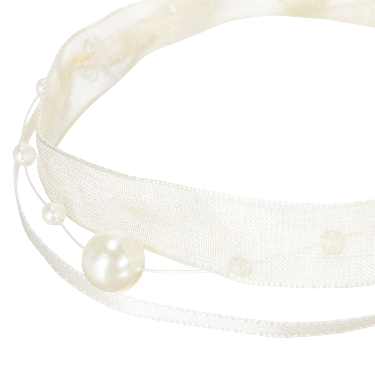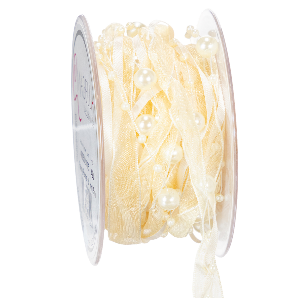 Dekorativt band med pärlor, krämfärgat, 20mm, 5m