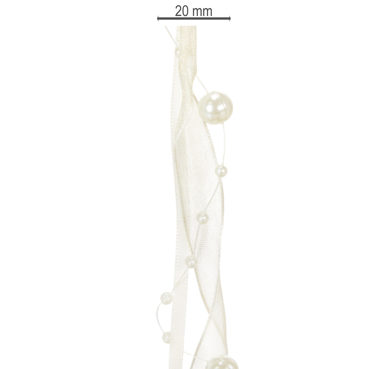 Produktnamn: Dekorativt band med pärlor, krämfärgat, 20mm, 5m