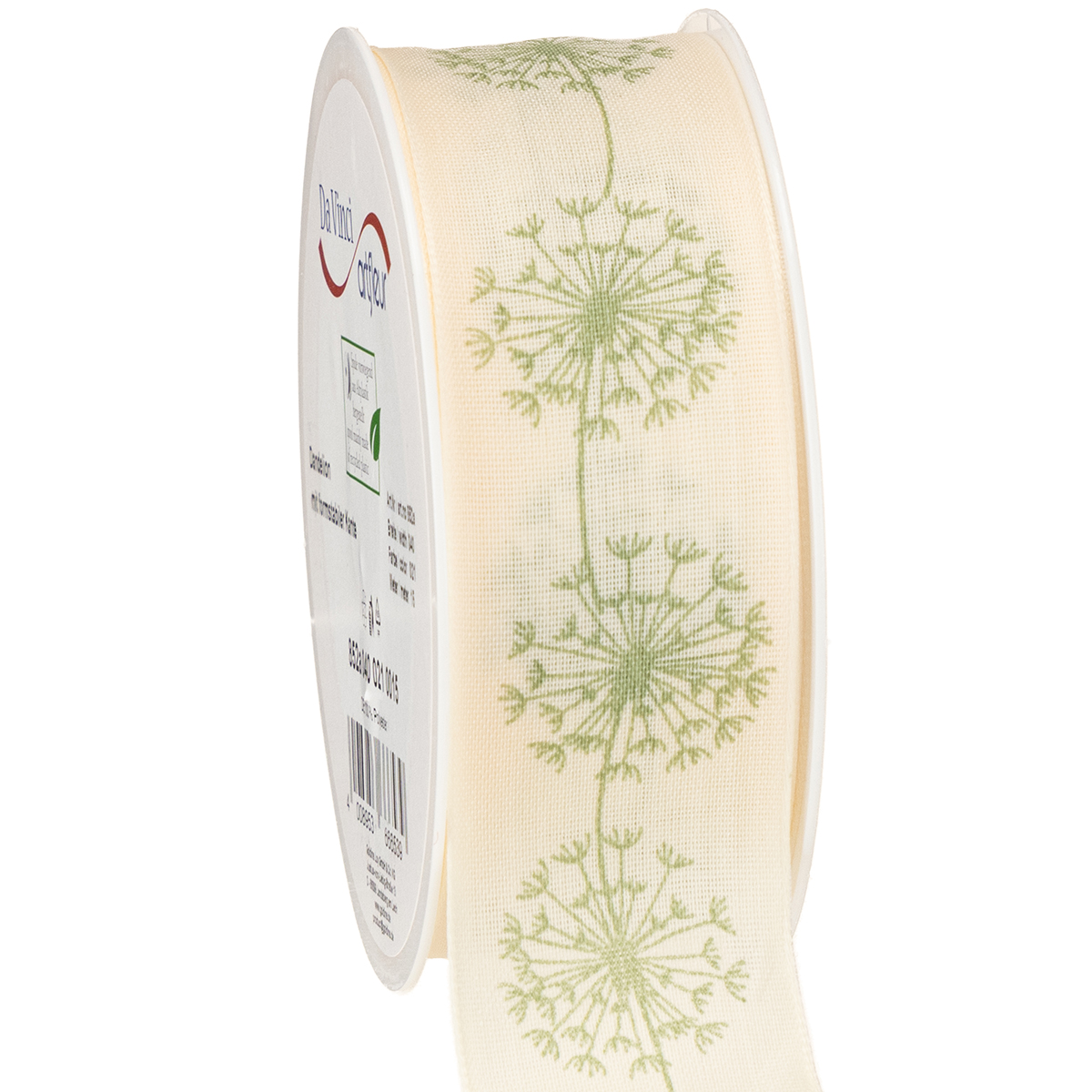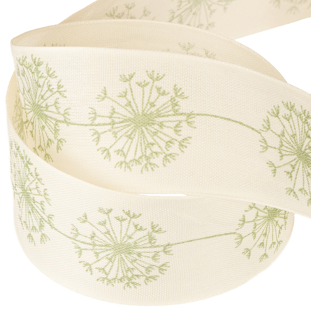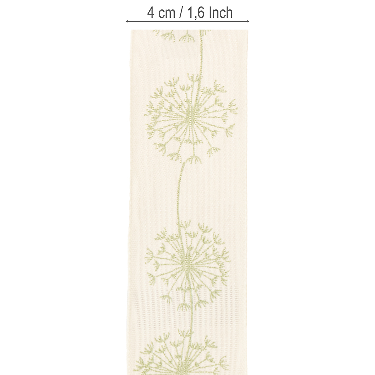 Dekorativt band, presentband, maskrosmotiv, krämfärgat, 40 mm, 15 m