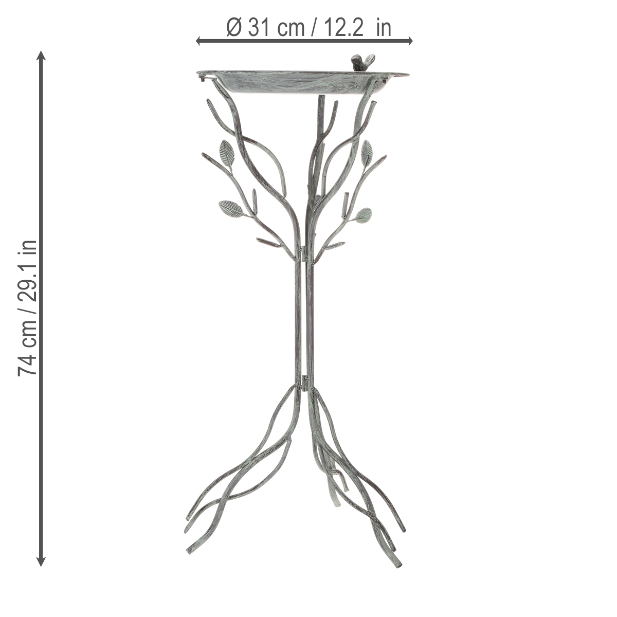 Detta fågelbad imponerar inte bara med sin funktionalitet utan även med sin eleganta design. Designen, som påminner om grenar, smälter harmoniskt in i alla trädgårdsmiljöer, oavsett om de är moderna, rustika eller romantiska lantlig stil. Med en höjd på 74 cm vilar fågelbadet stadigt på sin konstfullt utformade metallbas. Dess grå färg understryker dess tidlösa elegans och möjliggör mångsidiga kombinationer – oavsett om det är med blommande växter i livfulla färger eller subtila toner. Det rostbeständiga materialet säkerställer att du kommer att njuta av detta vackra möbel i många år framöver.