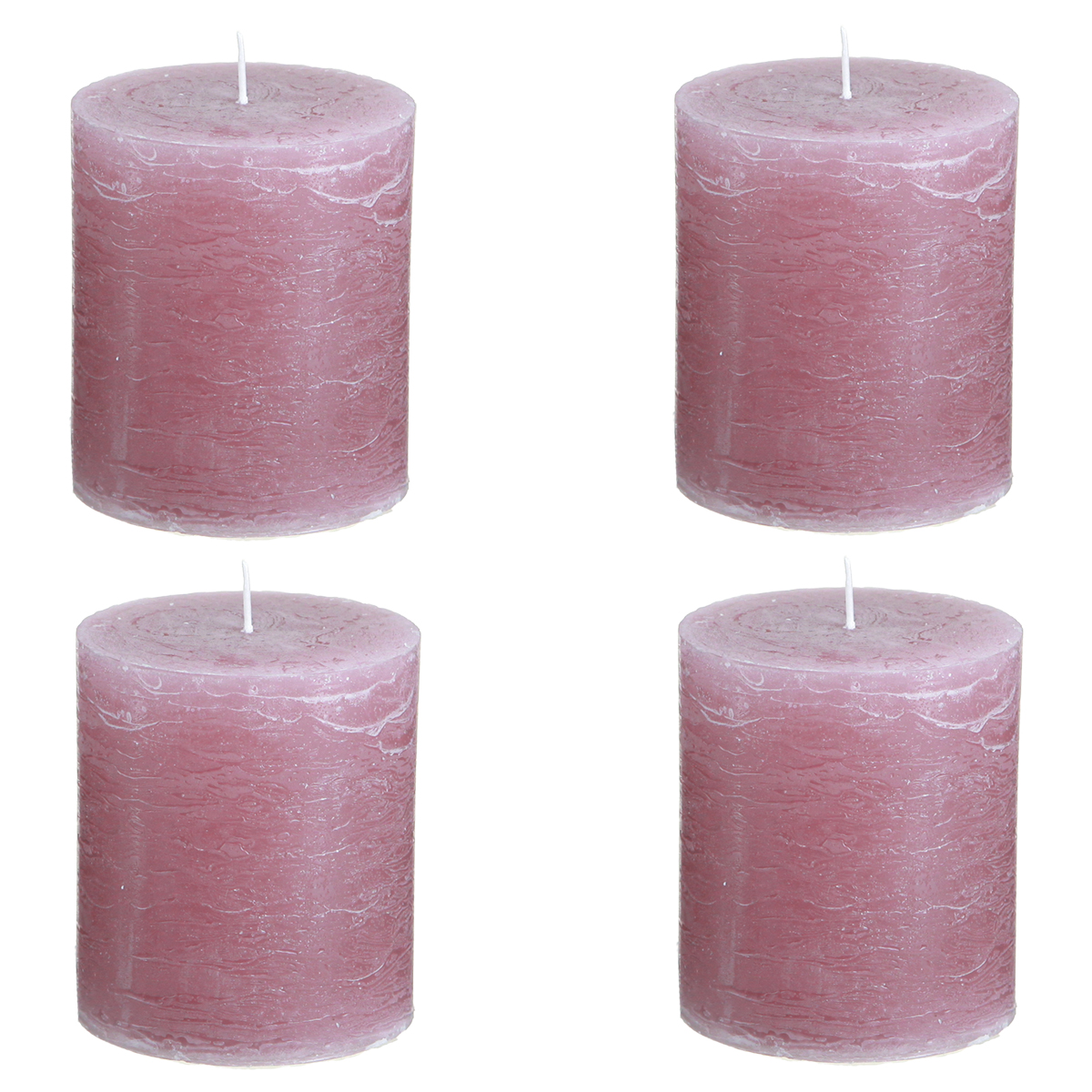Produktnamn: Enfärgade ljus gammalrosa pelarljus 70×80mm 4 st